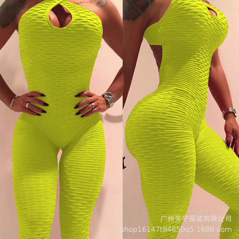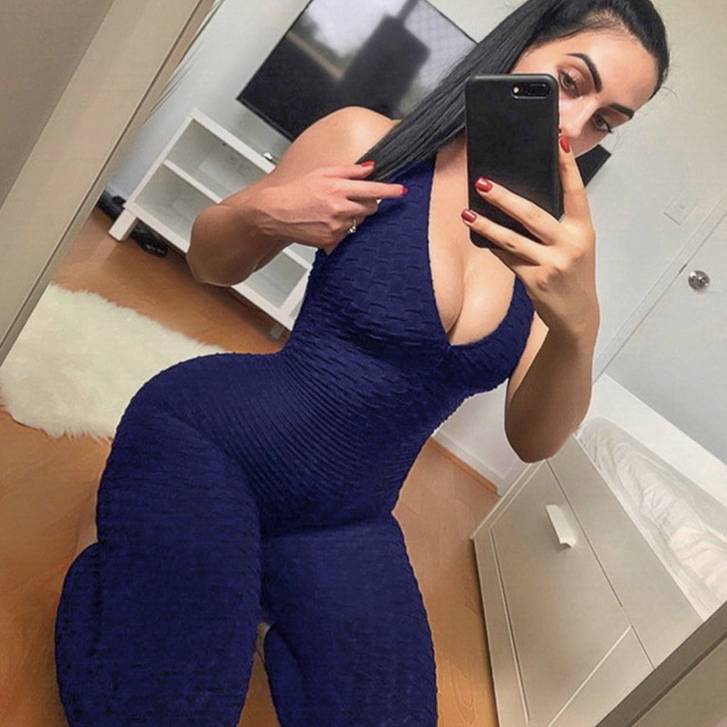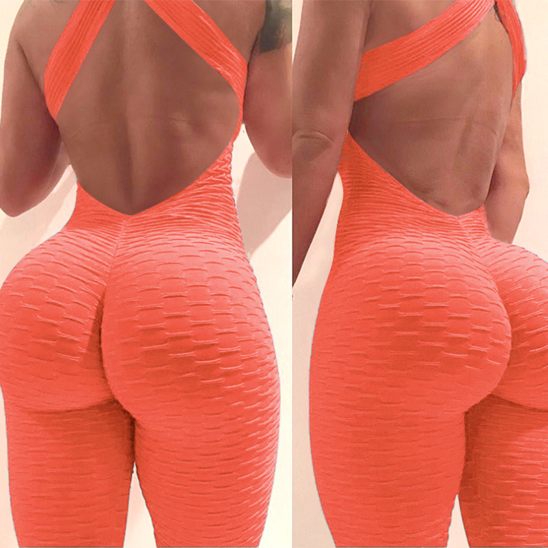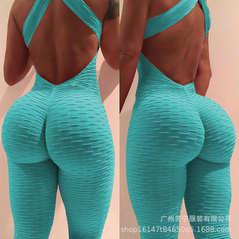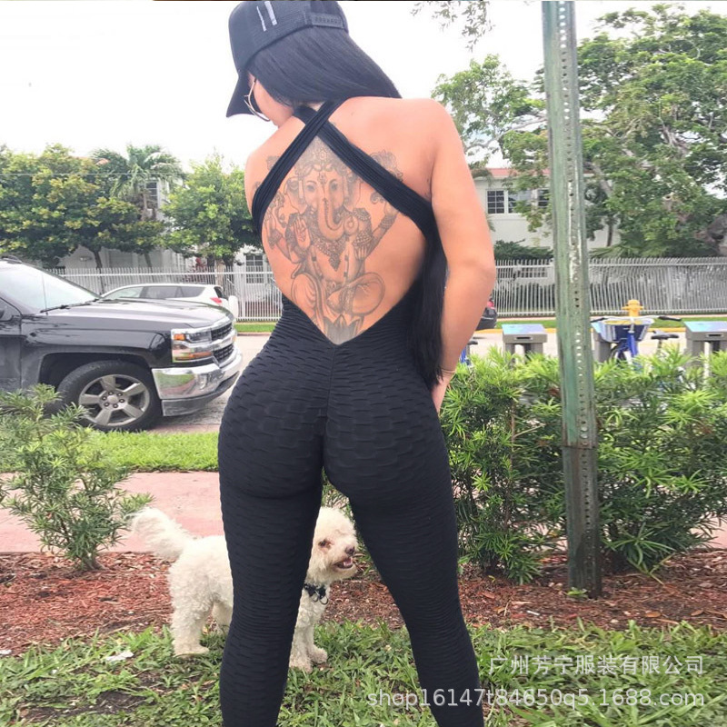 15 색 재고 유럽과 미국 자카드 점프 수트 섹시한 뜨거운 판매 엉덩이 요가 의류 점프 슈트 여성의 등이없는 피트니스 바지
