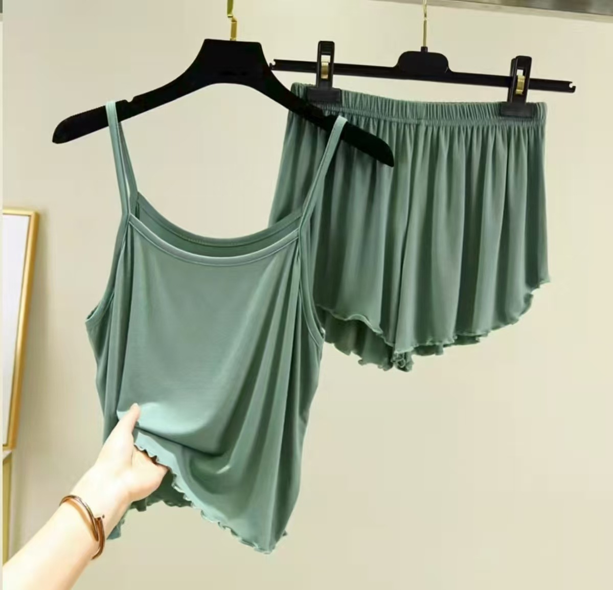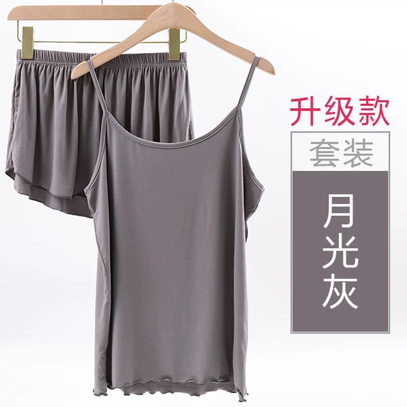 [페어리 슬링 세트] 여름 조끼 느슨한 캐주얼 여성의 플러스 사이즈 반바지 단색 잠옷 가정 옷스토어 가기