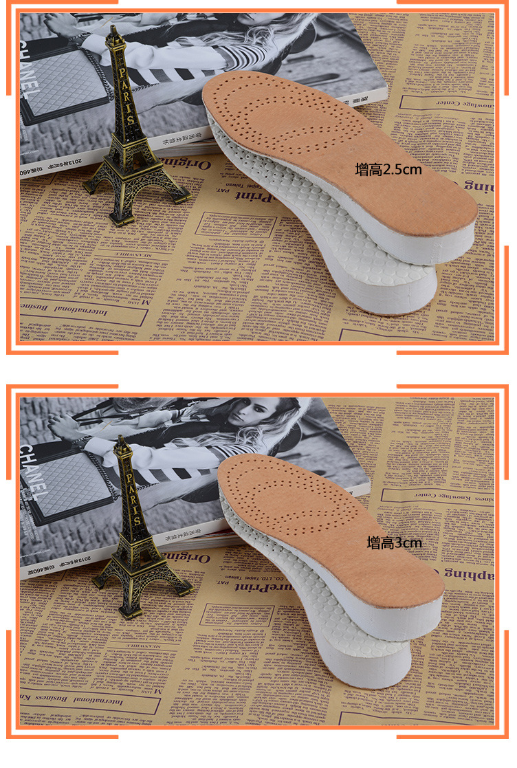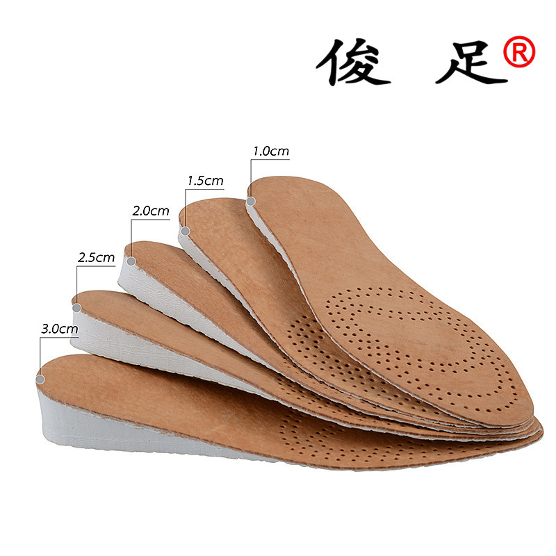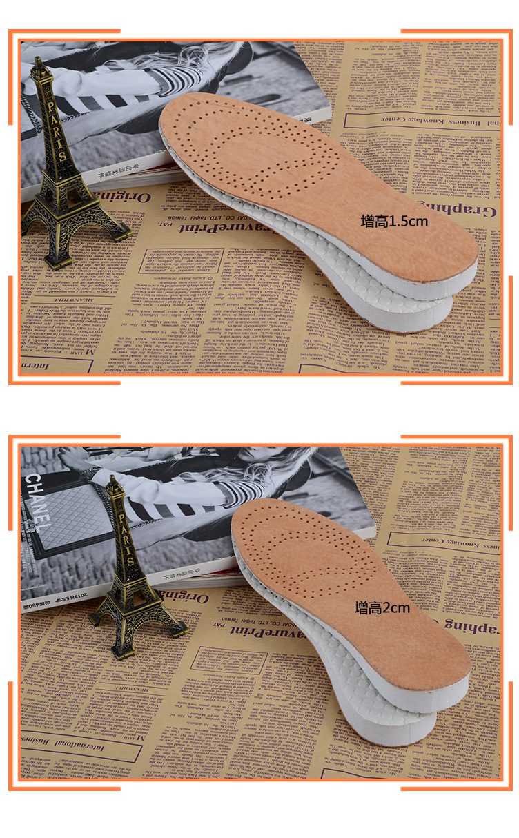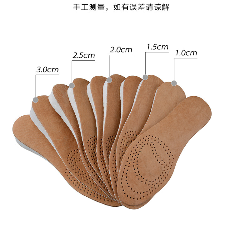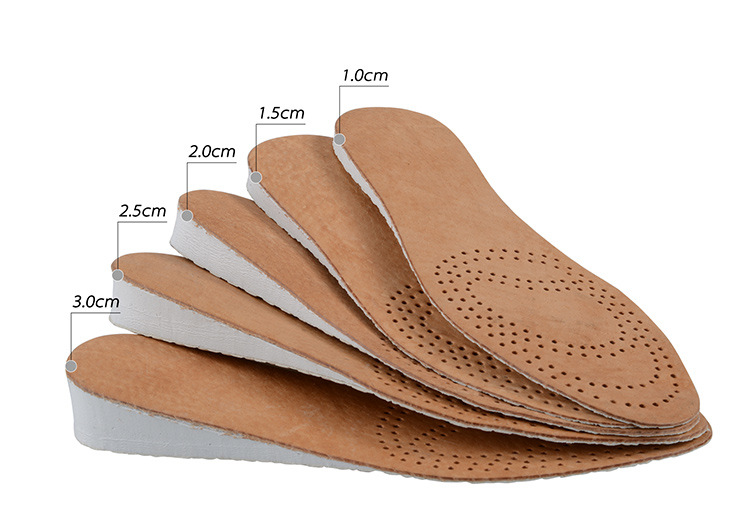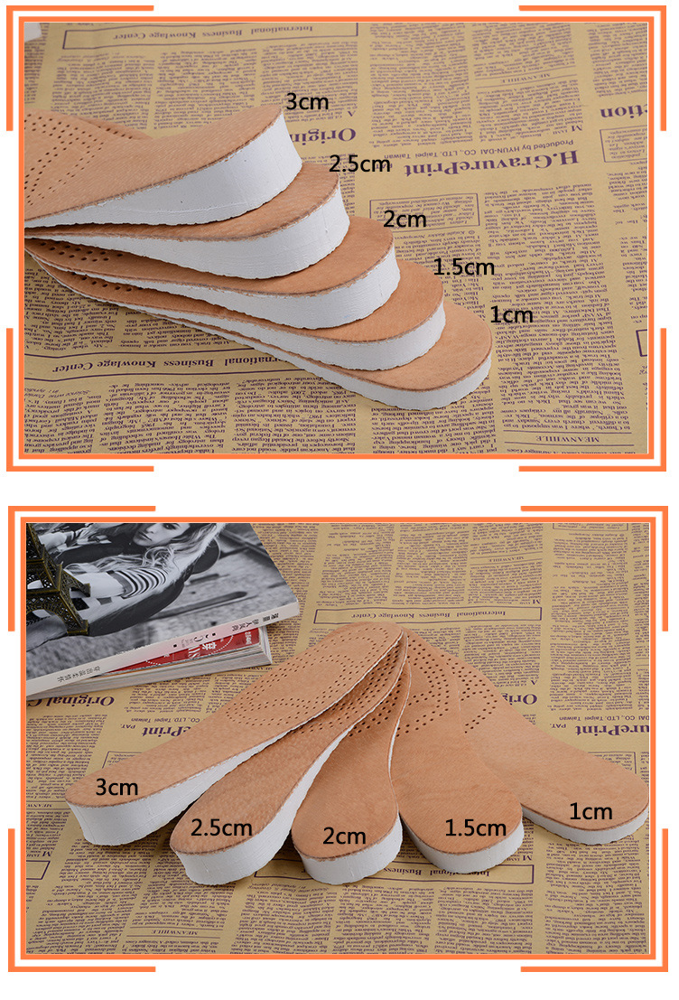 남녀공용 키높이 깔창, 숨쉬기 편한 투명한 땀 흡수 및 충격 흡수 가죽 키높이 깔창, 발이 피곤하지 않음