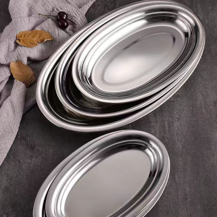 공장 스테인레스 스틸 두꺼운 타원형 어판 주방 가정용 계란 모양의 접시 밥 그릇 판 바베큐 판 도매스토어 가기