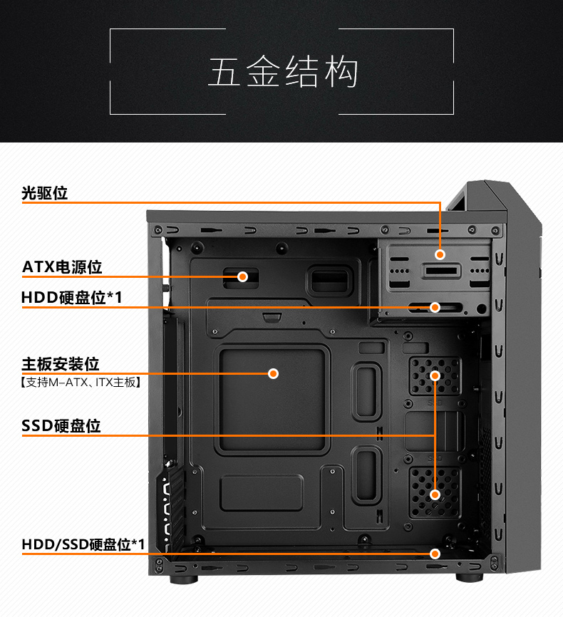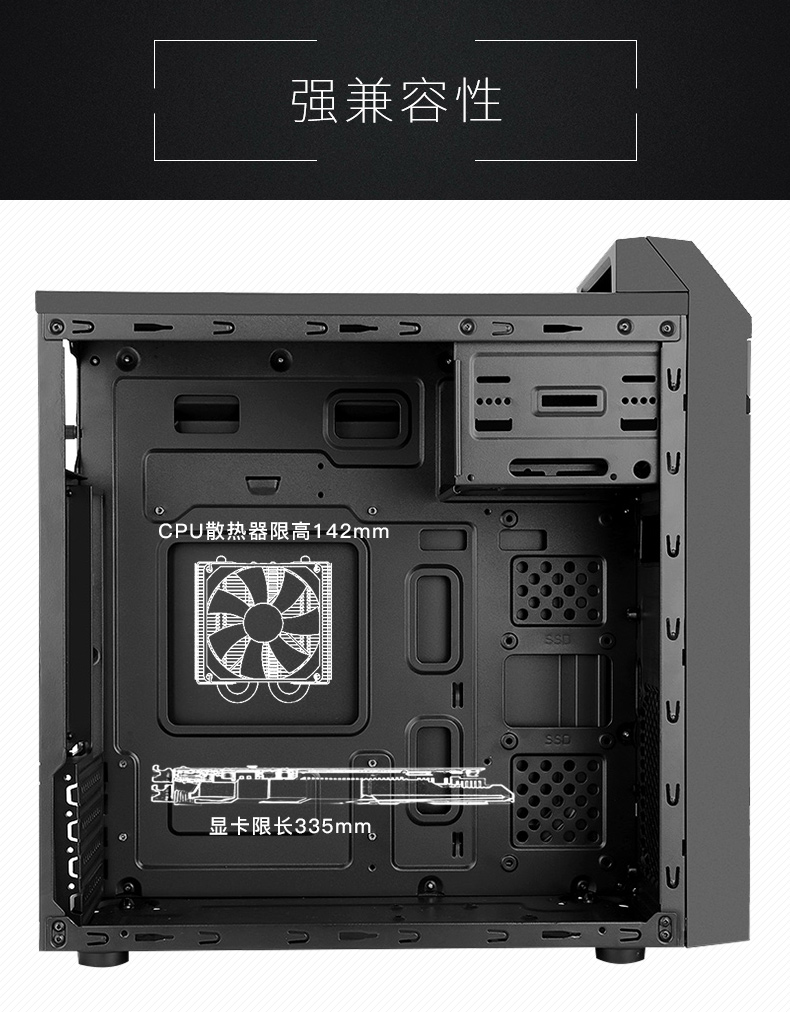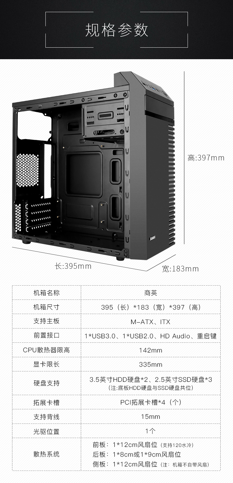Xianma Shangying 휴대용 비즈니스 컴퓨터 작은 케이스 USB3.0/지원 M-ATX 작은 보드 및 긴 그래픽 카드스토어 가기
