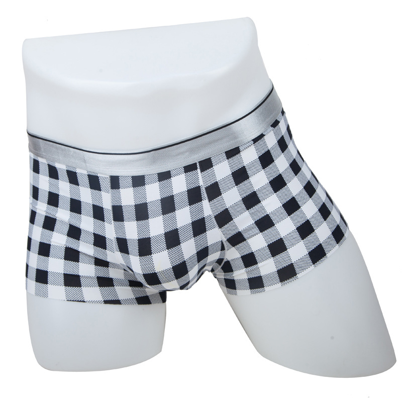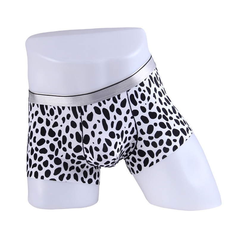 남자의 심리스 복서 속옷 아이스 실크 여름 섹시 인쇄 중간 허리 통기성 울트라 씬 4 코너 반바지 청소년 유행
