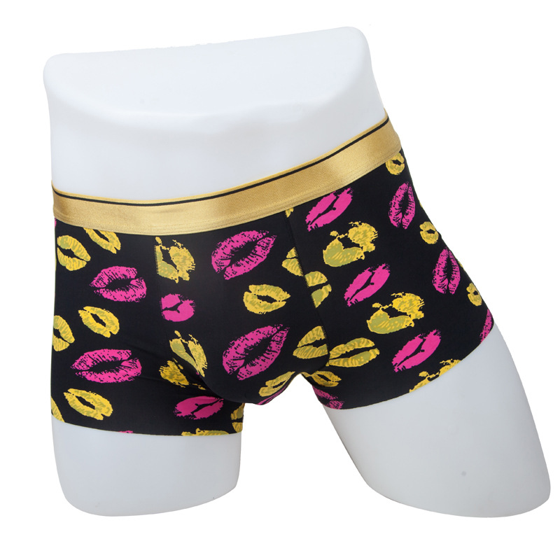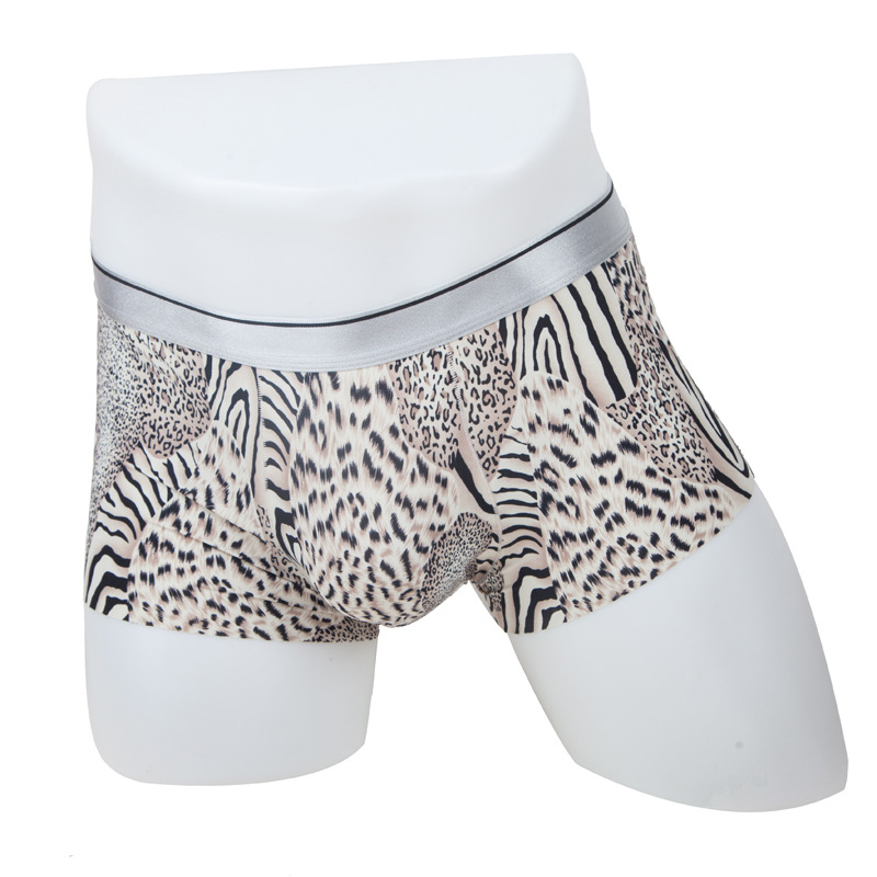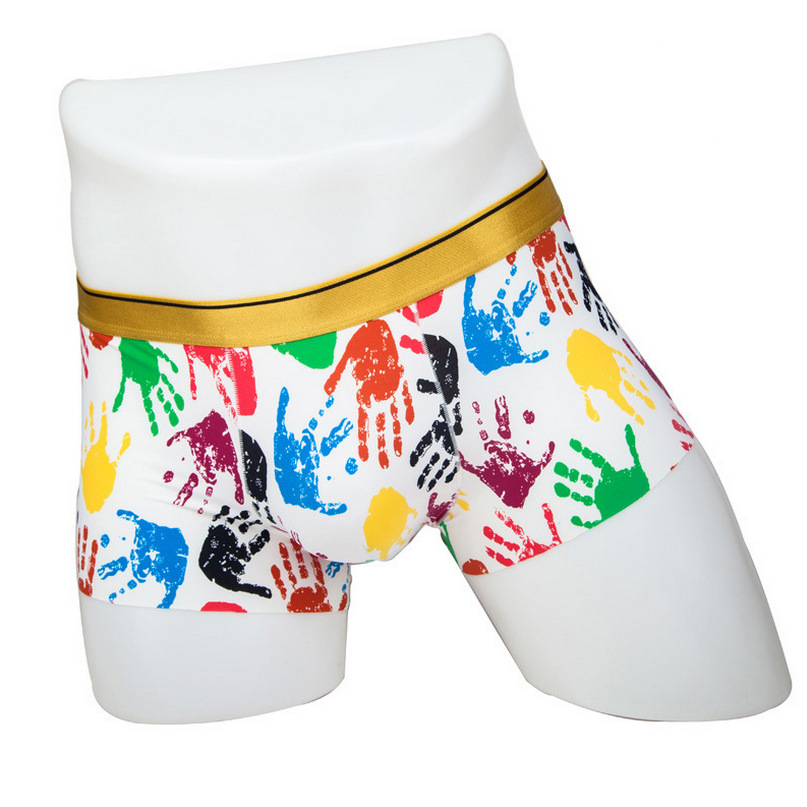 남자의 심리스 복서 속옷 아이스 실크 여름 섹시 인쇄 중간 허리 통기성 울트라 씬 4 코너 반바지 청소년 유행스토어 가기
