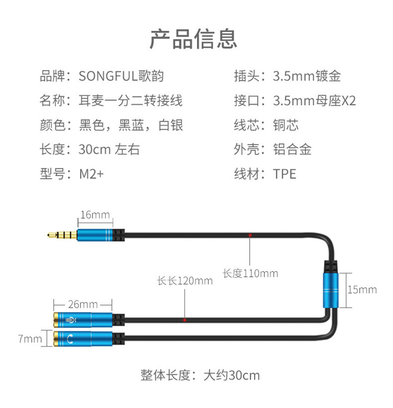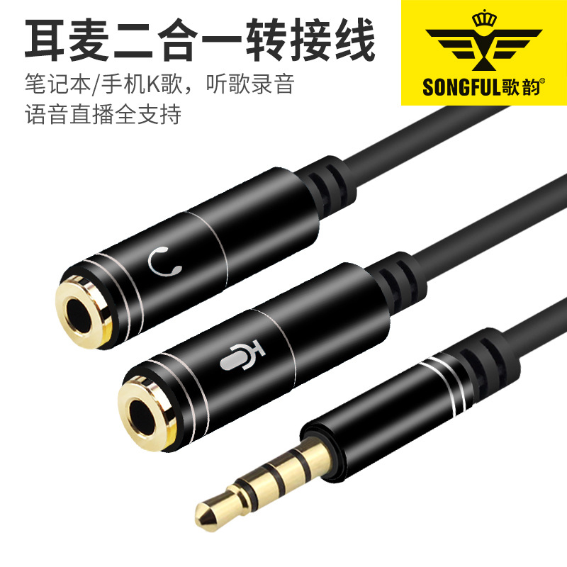 휴대 전화 오디오 케이블 카 오디오 케이블 3.5 컴퓨터 헤드셋 투인원 전송 오디오 케이블 1-2 스플리터