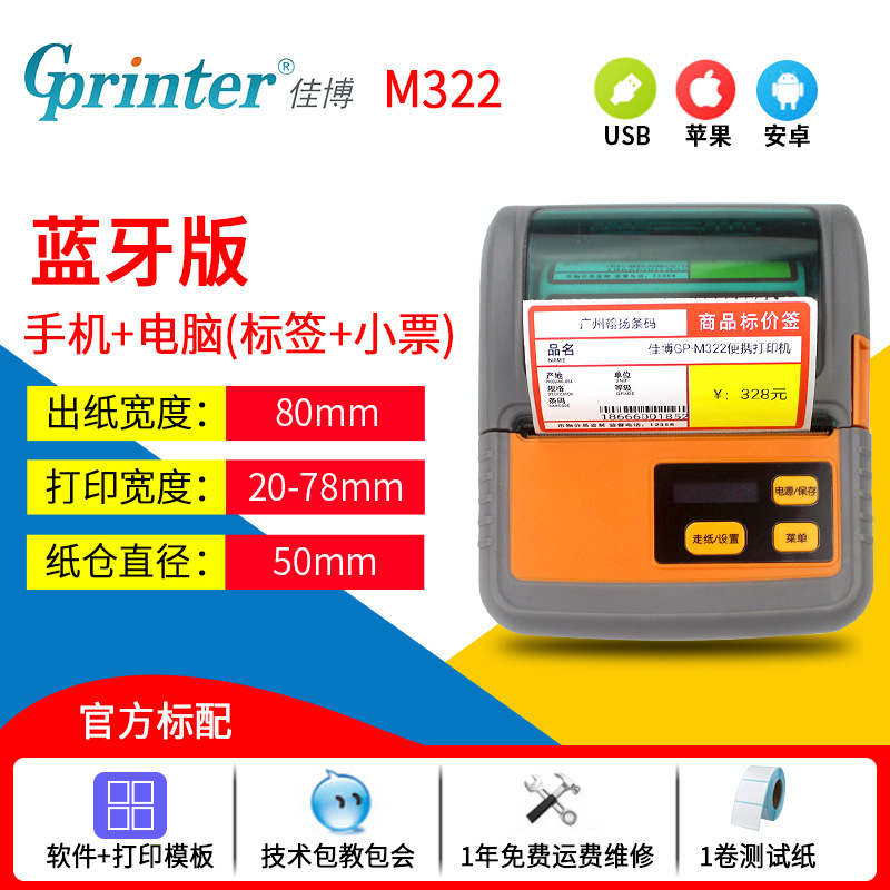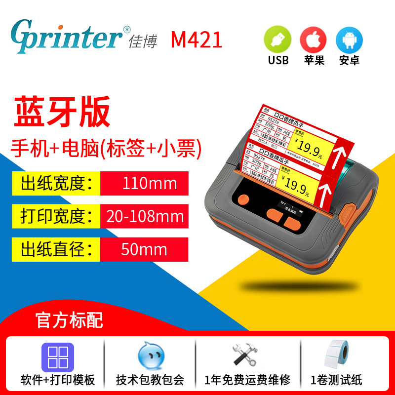 Gprinter Jiabo M322/P261/M421 휴대용 프린터 블루투스 휴대용 휴대용 열 접착 라벨스토어 가기