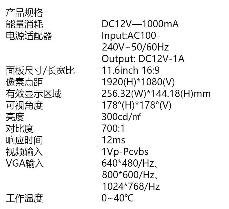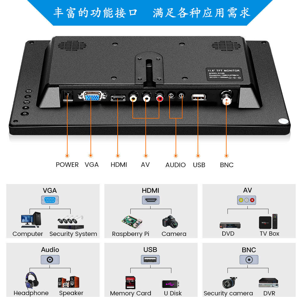 12 인치 IPS 자동차 HD 모니터 HDMI 컴퓨터 TV 1080p 보안 산업 설비 LCD 모니터