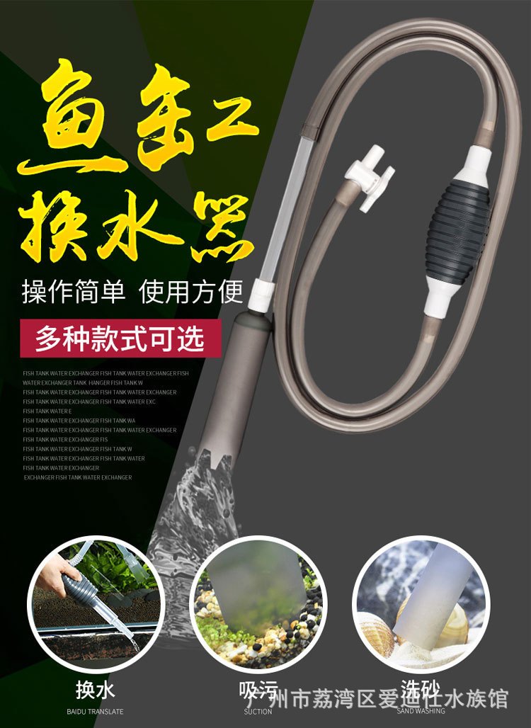 使用简单,只需将吸水管一端置于水族箱水面下,用手压放气囊,连续几下就虹吸式把水抽出来了。