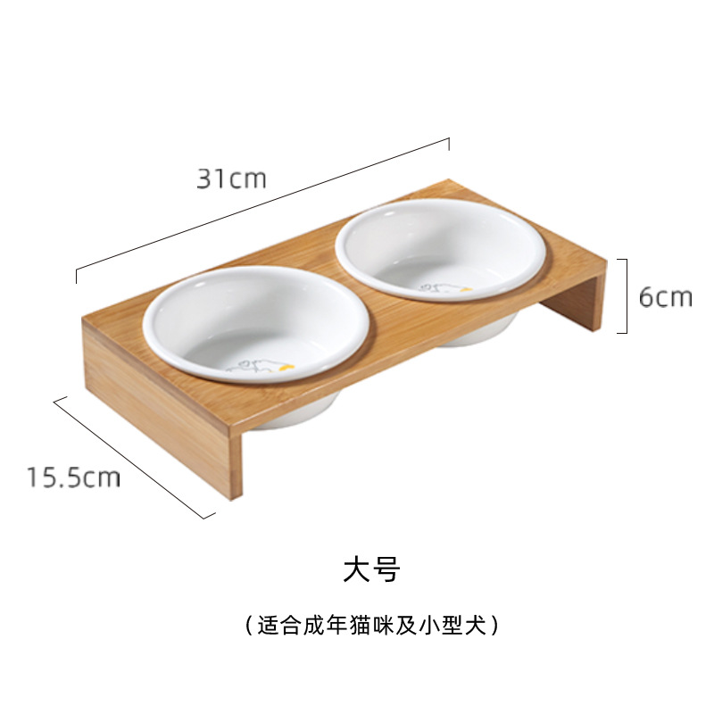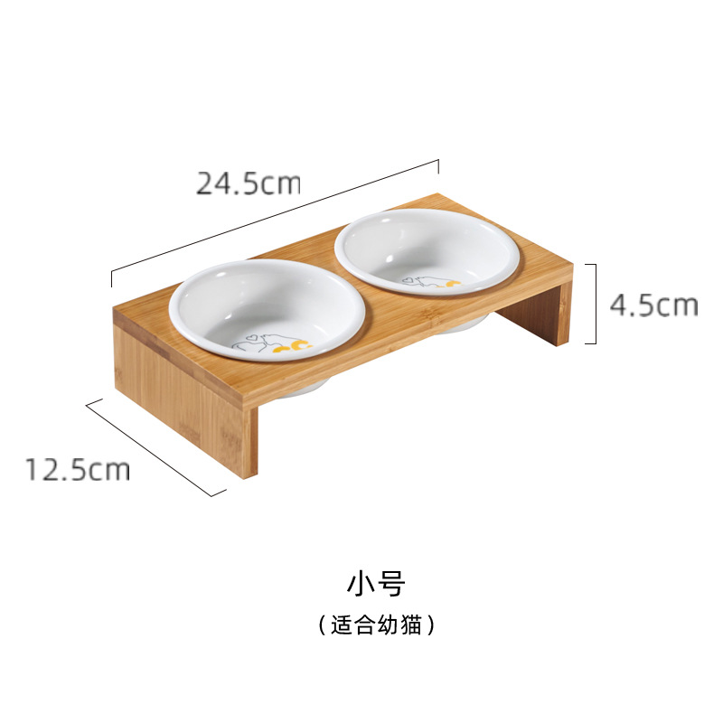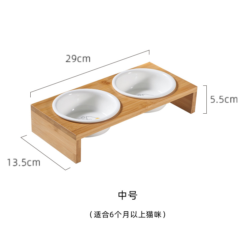 猫碗双碗狗碗陶瓷猫食盆竹制架猫饭盆饮水猫粮碗狗盆防滑宠物用品