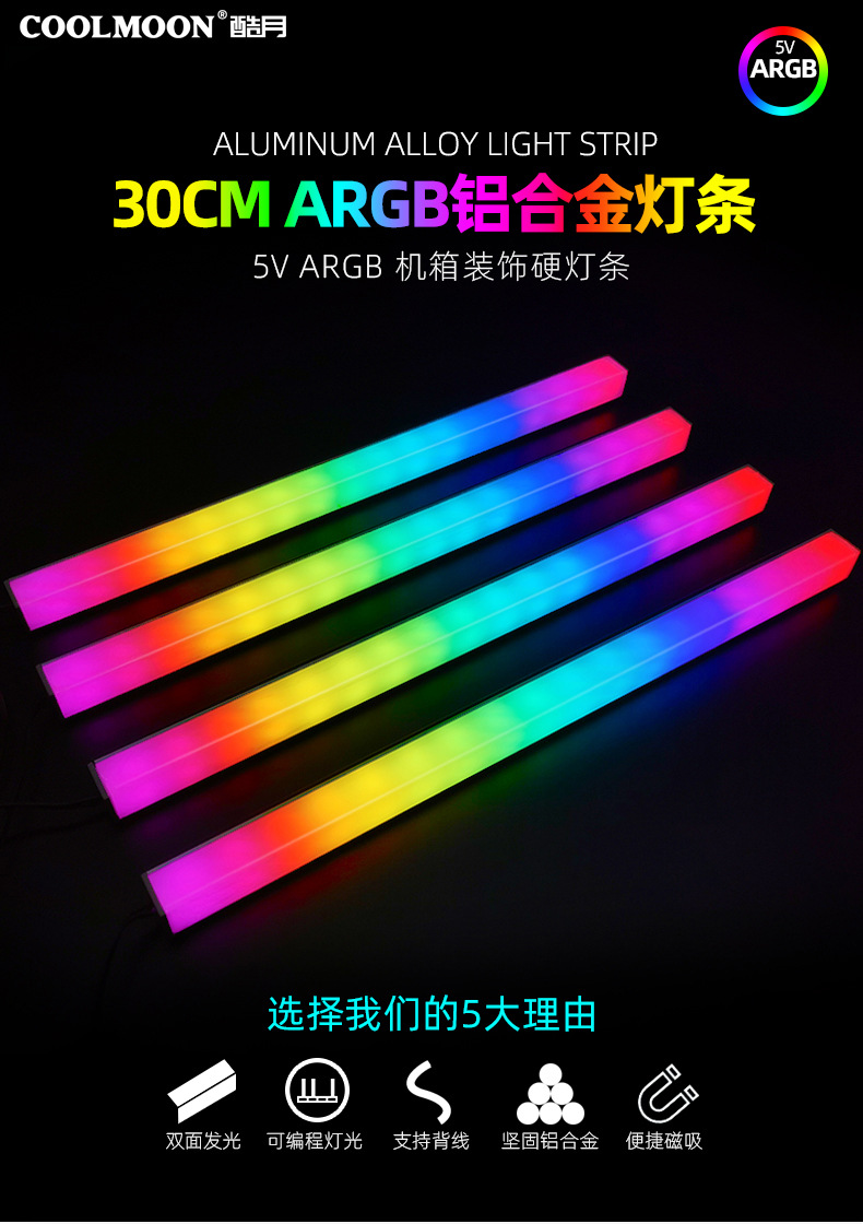 COOLMOON 알루미늄 합금 양면 빛나는 RGB 하드 라이트 스트립 5v RGB 매직 라이트 스트립 컴퓨터 케이스 LED 라이트 스트립