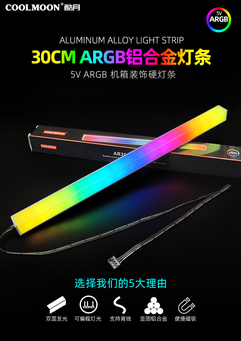 알루미늄 합금 양면 발광 ARGB 라이트 스트립 자석식 다채로운 LED 장식 라이트 스트립 컴퓨터 케이스 RGB 라이트 스트립