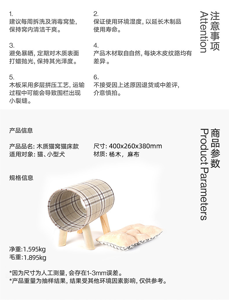 사계절용 고양이 침대, 탈부착 및 세탁 가능, 여름용 고양이 용품, 애완동물 침대, 해먹, 강아지 침대, 통기성 좋은 나무 재질