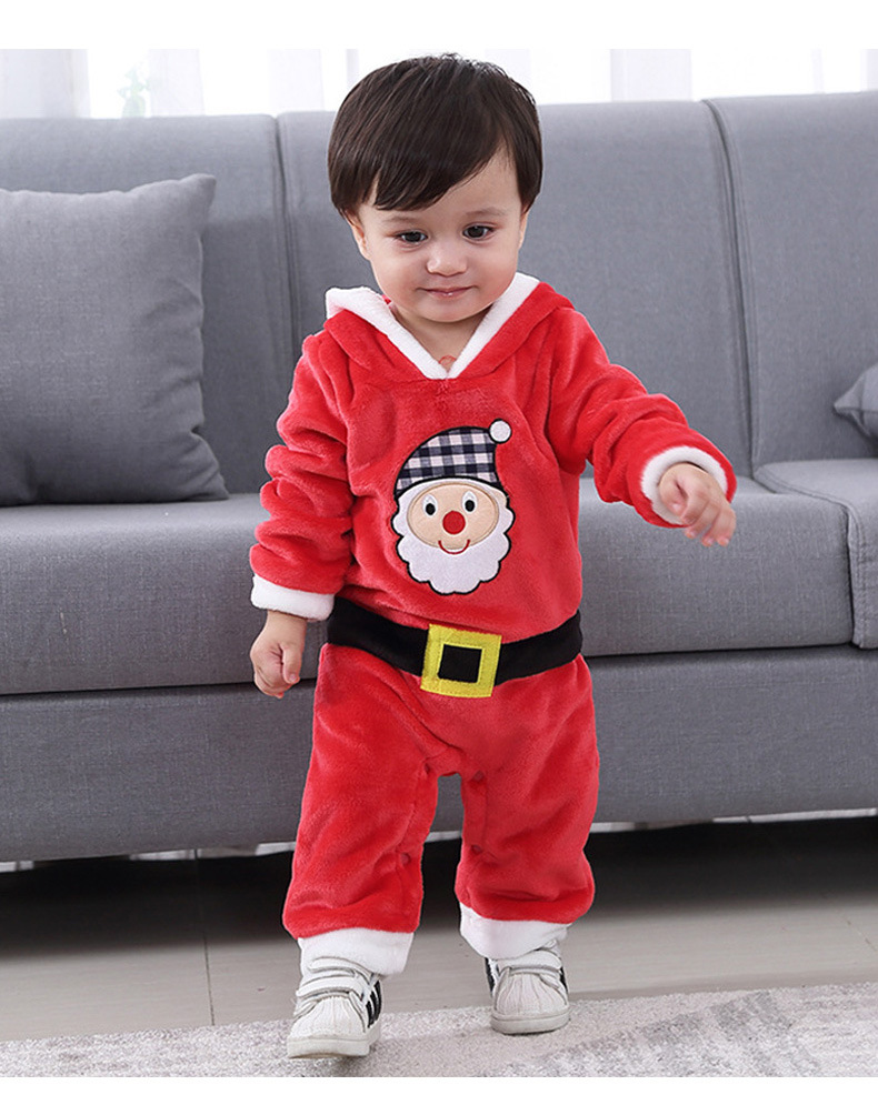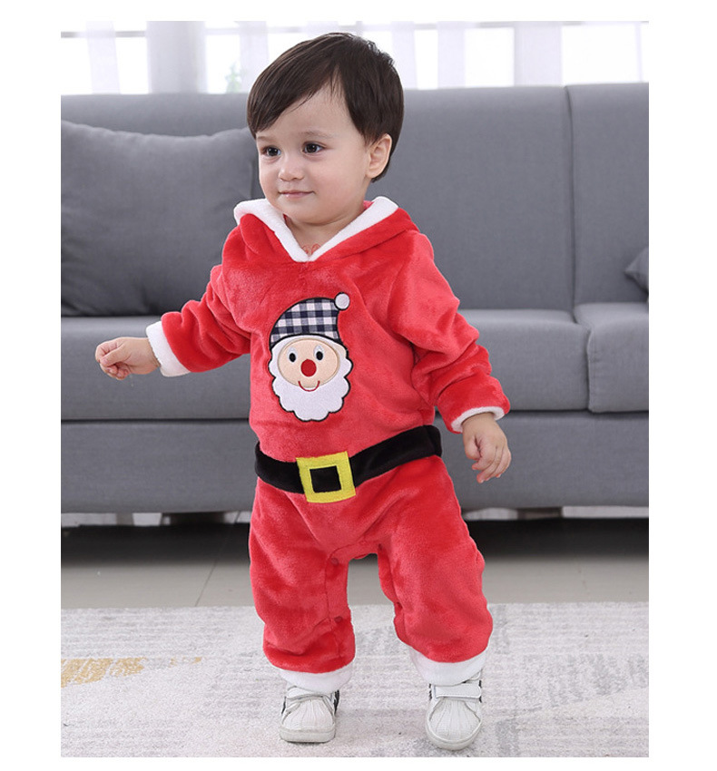 아동 의류 도매 기본 소스 새해 크리스마스 아동 의류 산타 클로스 후드 아기 아기 점프 수트