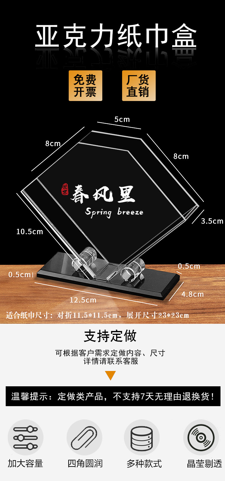 아크릴 티슈 홀더 세로 냅킨 카톤 크리에이티브 유럽 호텔 용품 호텔 서양 레스토랑 티슈 박스 도매스토어 가기