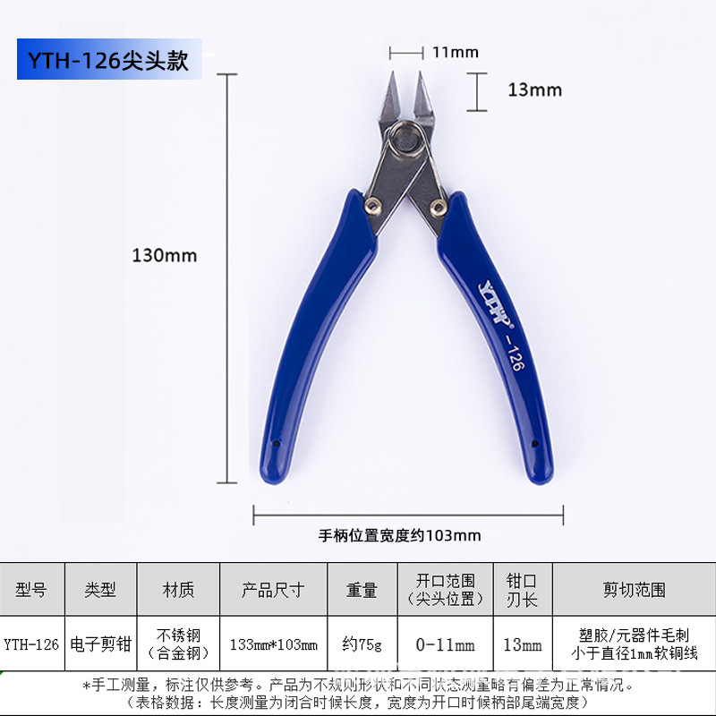 YTH126 비스듬한 입 절단 펜치 비스듬한 입 펜치 모델 노즐 절단 펜치 5 인치 다기능 절단 펜치 전기 절삭 공구스토어 가기