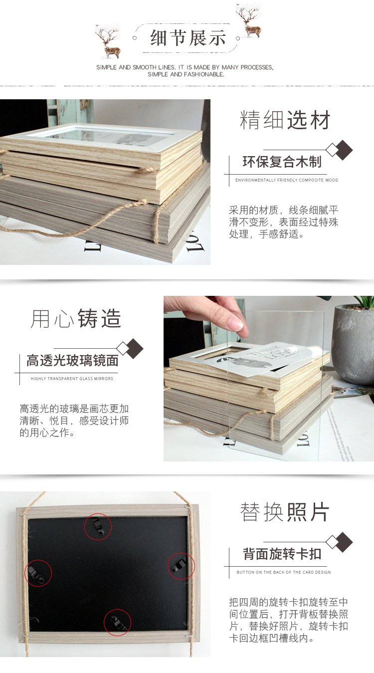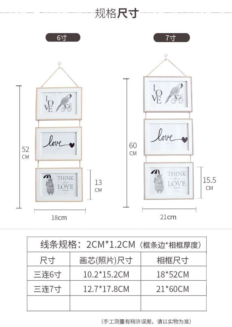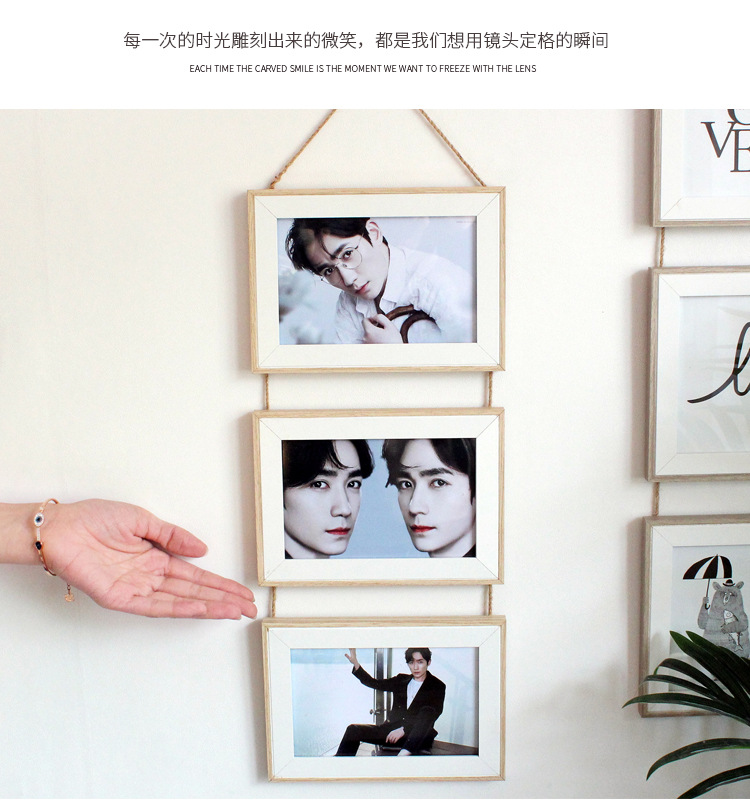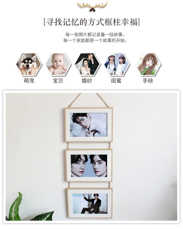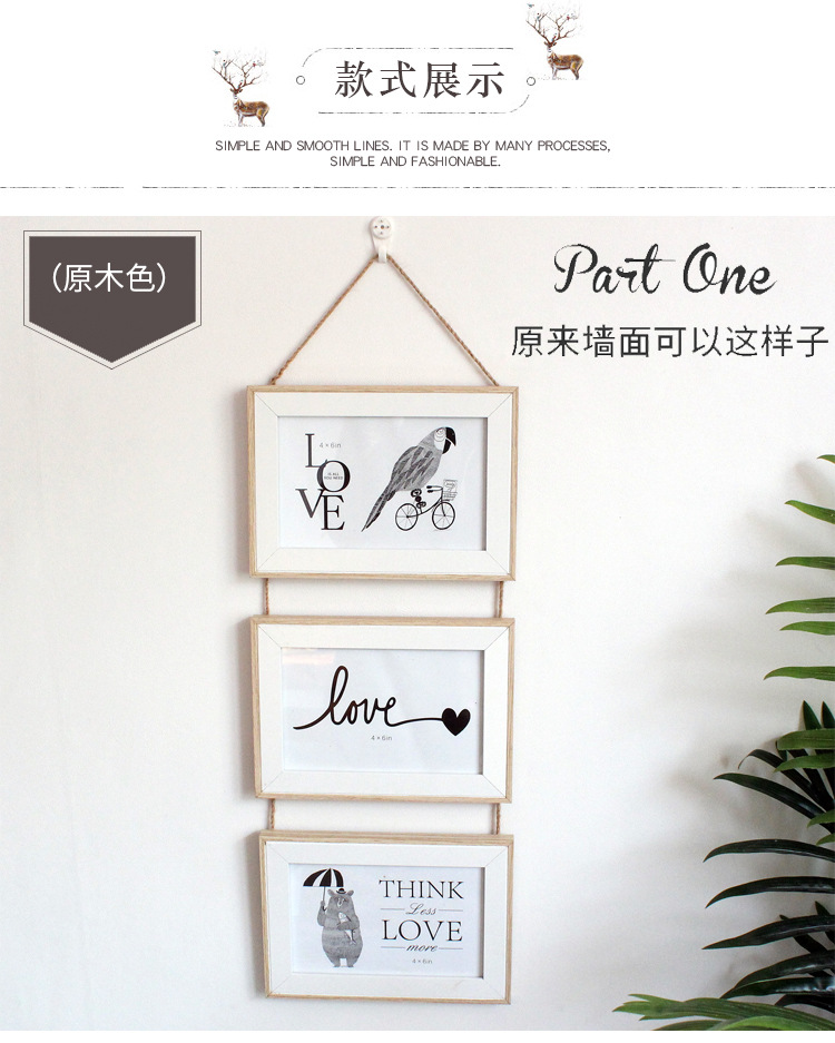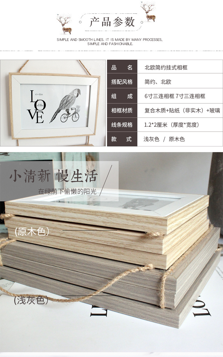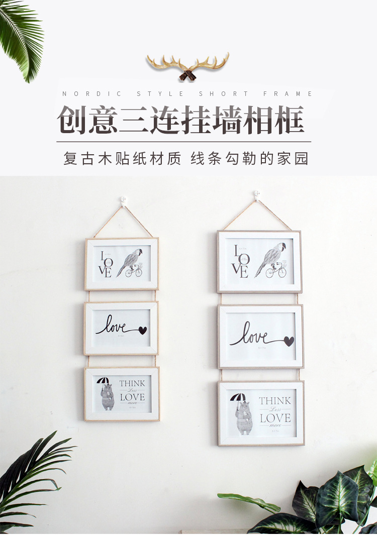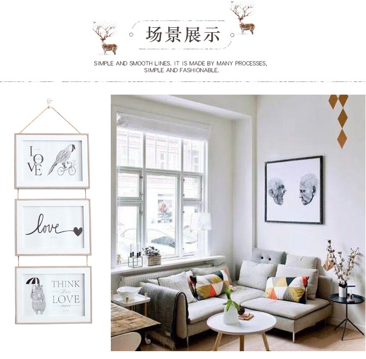 此款三折北欧式风格折叠组合挂墙三折玻璃相框有6寸7寸两种型号,有2种颜色可更换上自己照片,每个相框可以装横版3张照片。此款照片相框是玻璃面,通透有质感,木质材质十分有质感。此相框是款难得的市场热销组合挂墙相框装饰。