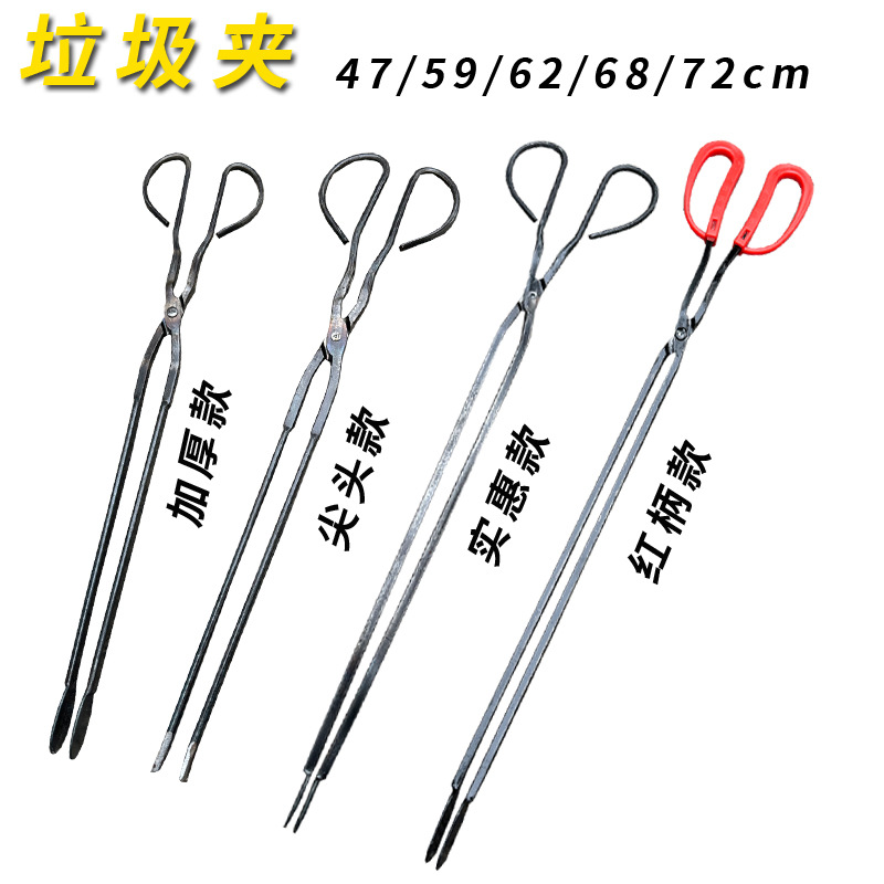 쓰레기 클립 긴 손잡이 플랫 헤드 불 집게 쓰레기 집게 피커 철 손잡이 철 집게 바베큐 숯 집게 석탄 케이크 클립 뾰족한 머리 위생 클립