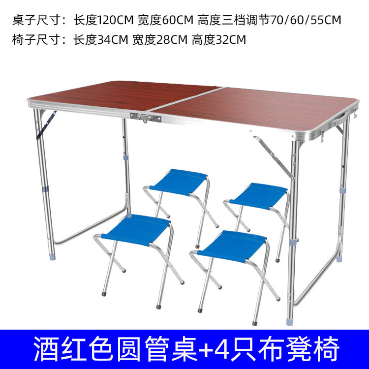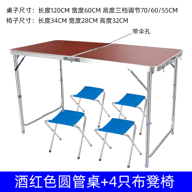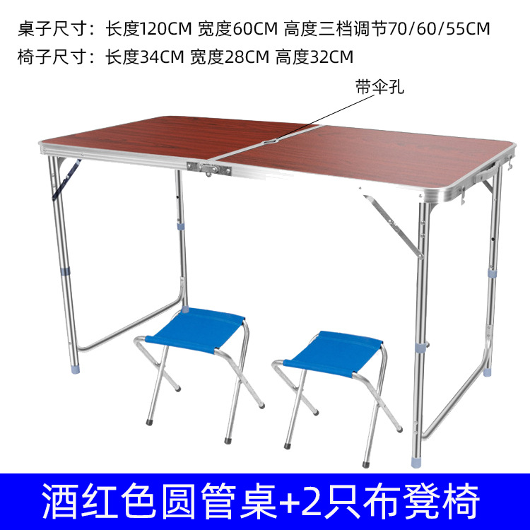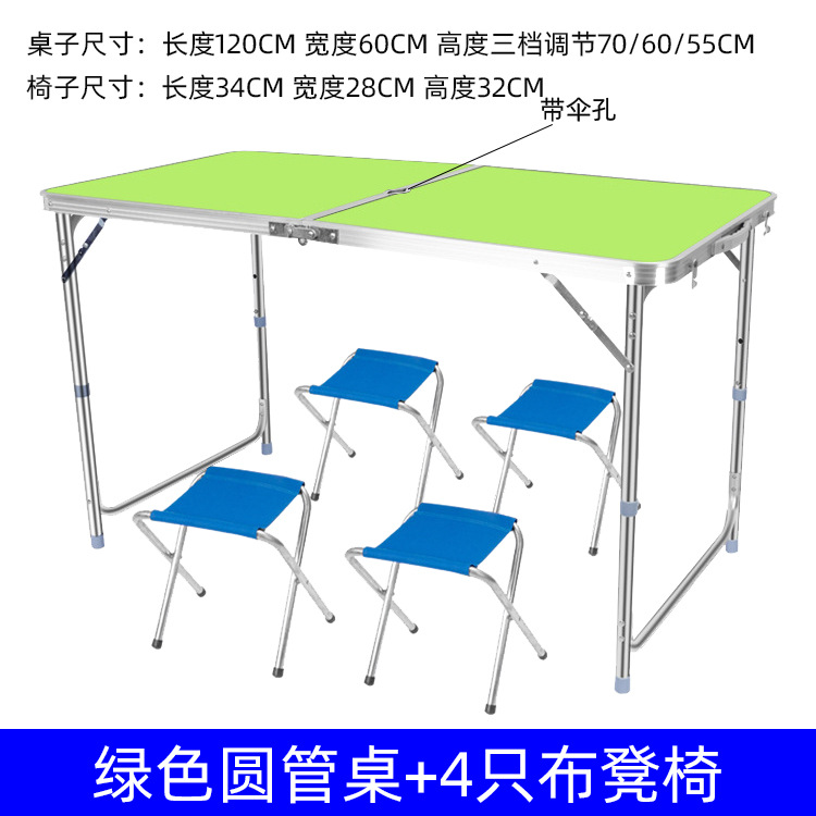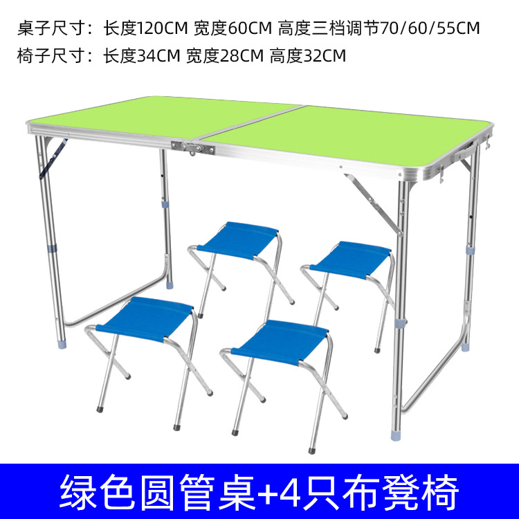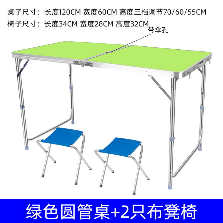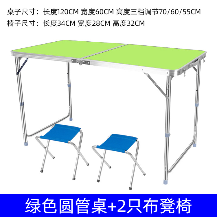 더블 막대 원형 튜브 휴대용 녹색 테이블과 의자 세트 야외 캠핑 접이식 알루미늄 합금 테이블 스톨 테이블과 의자 도매스토어 가기