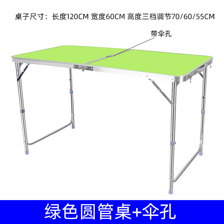 더블 막대 원형 튜브 휴대용 녹색 테이블과 의자 세트 야외 캠핑 접이식 알루미늄 합금 테이블 스톨 테이블과 의자 도매