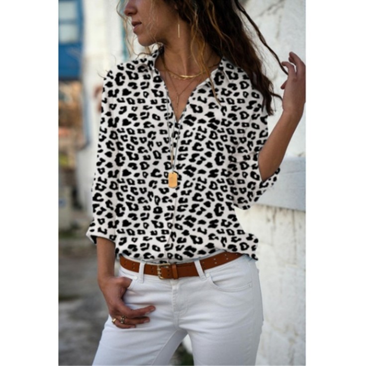 2021 독립 방송국 AliExpress 폭발 여성용 유럽 및 미국 캐주얼 프린트 카디건 라펠 여성용 긴팔 셔츠스토어 가기