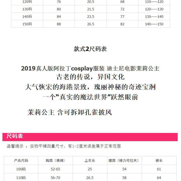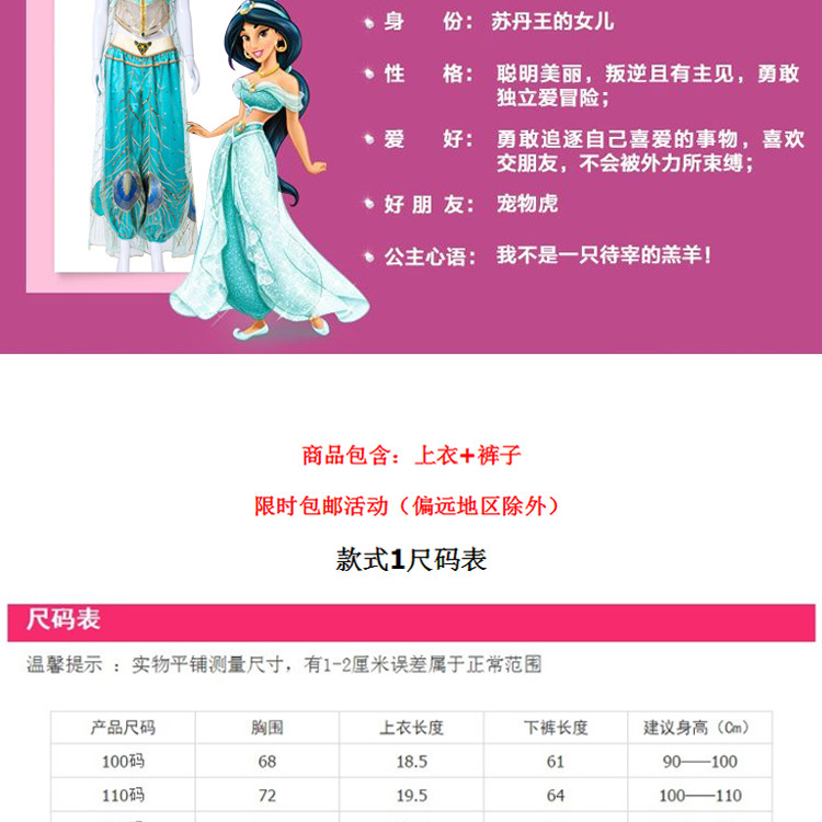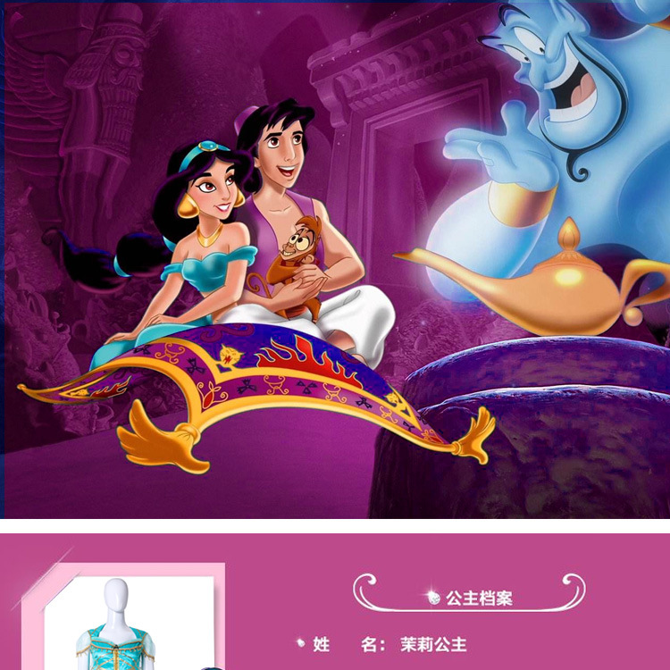 2019 라이브 알라딘 코스프레 의상 영화 공주 재스민 재고 무료 배송스토어 가기