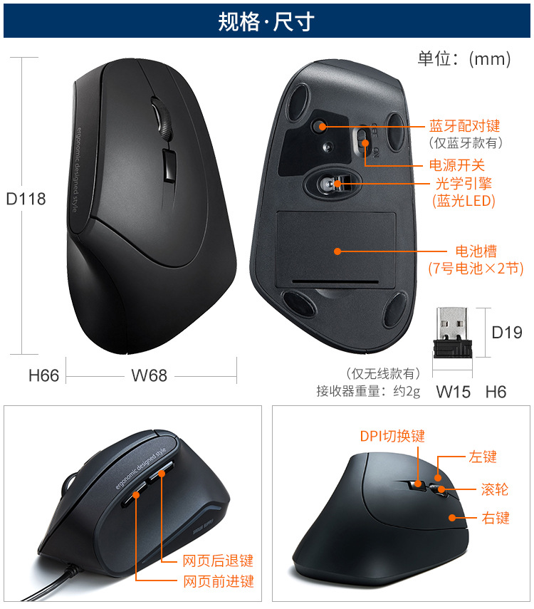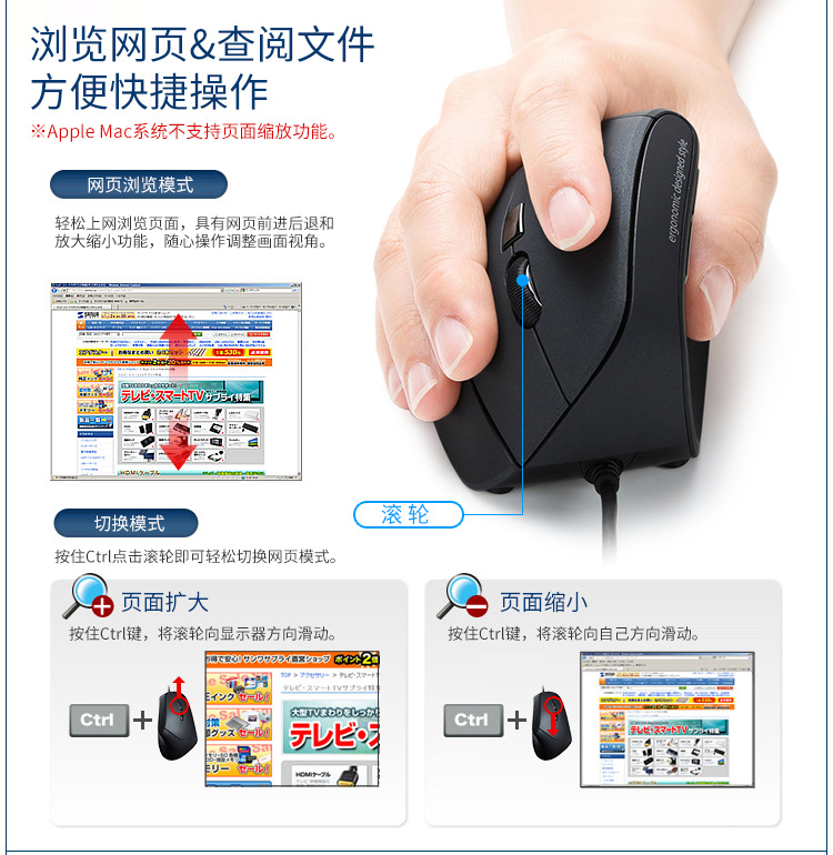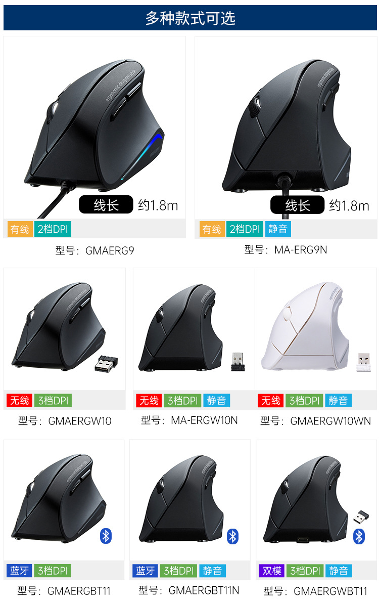 일본 SANWA 유선 블루 레이 마우스 인체 공학적 직립 그립 사무실 게임 마우스 GMAERG9스토어 가기