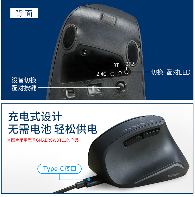 일본 SANWA 유선 블루 레이 마우스 인체 공학적 직립 그립 사무실 게임 마우스 GMAERG9