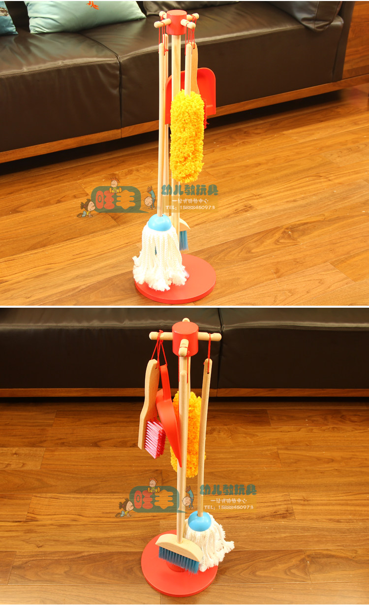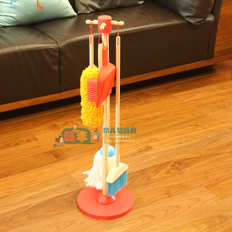 어린 이용 빗자루 걸레 먼지 세트 단단한 나무 미니 빗자루 어린이 아기 놀이 집 청소 장난감스토어 가기