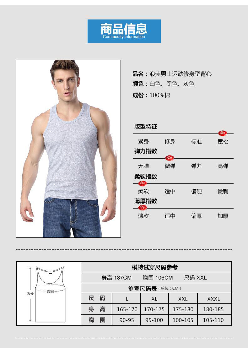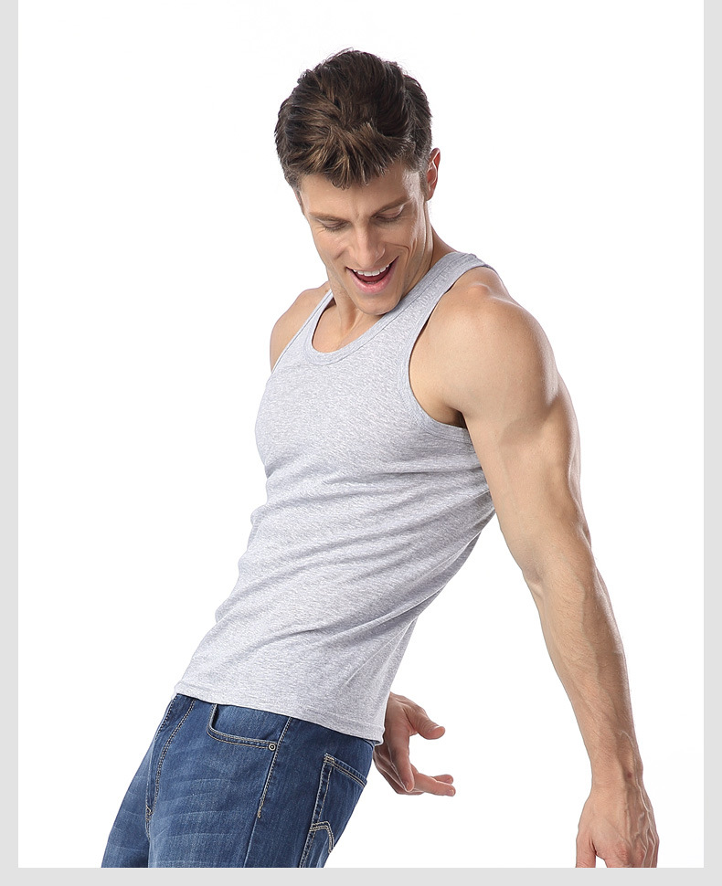 Longsha 조끼 남자 여름 면 청소년 슬림베이스 통기성 단색 남성 스포츠 피트니스 조끼 도매스토어 가기