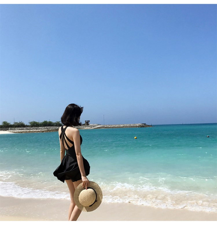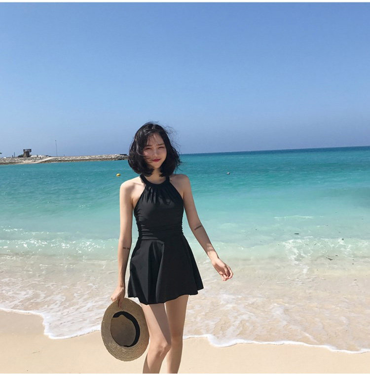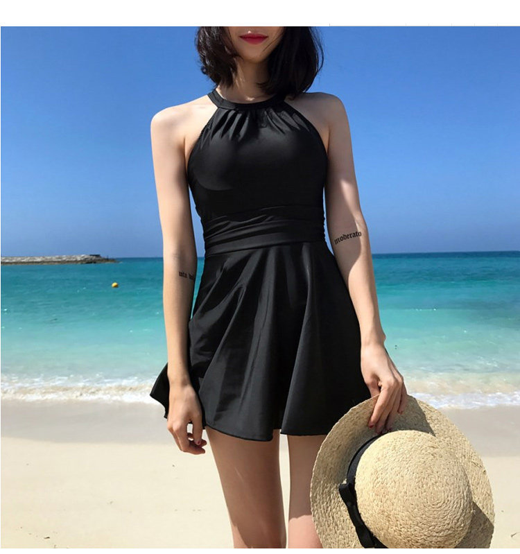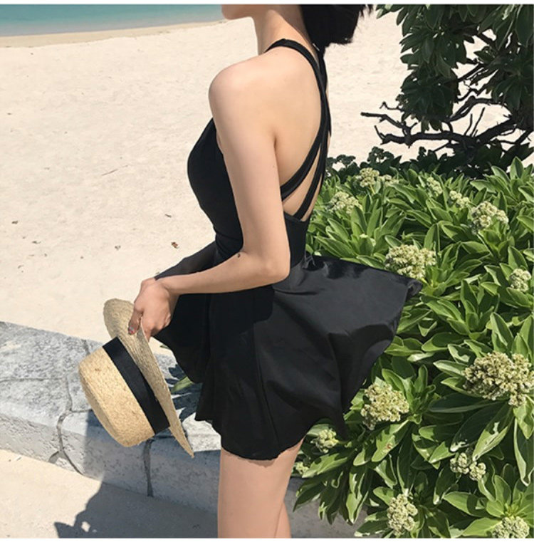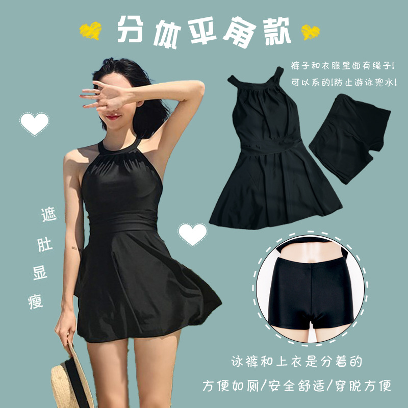 공장 다이렉트 블랙 플러스 사이즈 수영복 여성용 통통녀 보수적 인 원피스 스커트 플랫 앵글 슬림 배꼽 덮인 온천 수영복스토어 가기