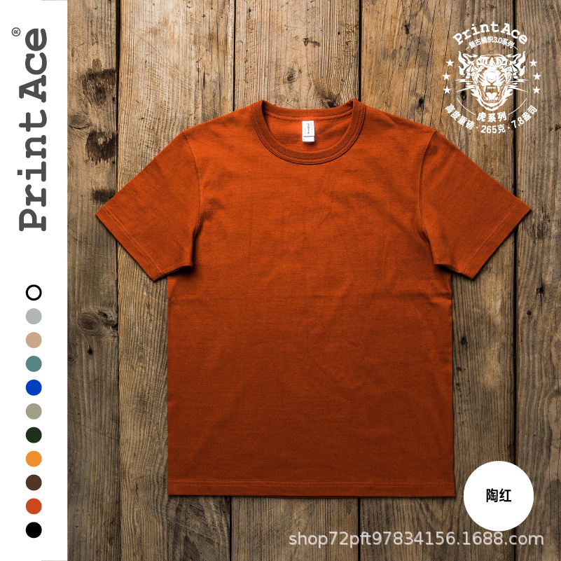 1-33 컬러 PrintAce 카지 레트로 슈퍼 헤비 코튼 원활한 배럴 짠 라운드 넥 반소매 남성용 T 6100스토어 가기