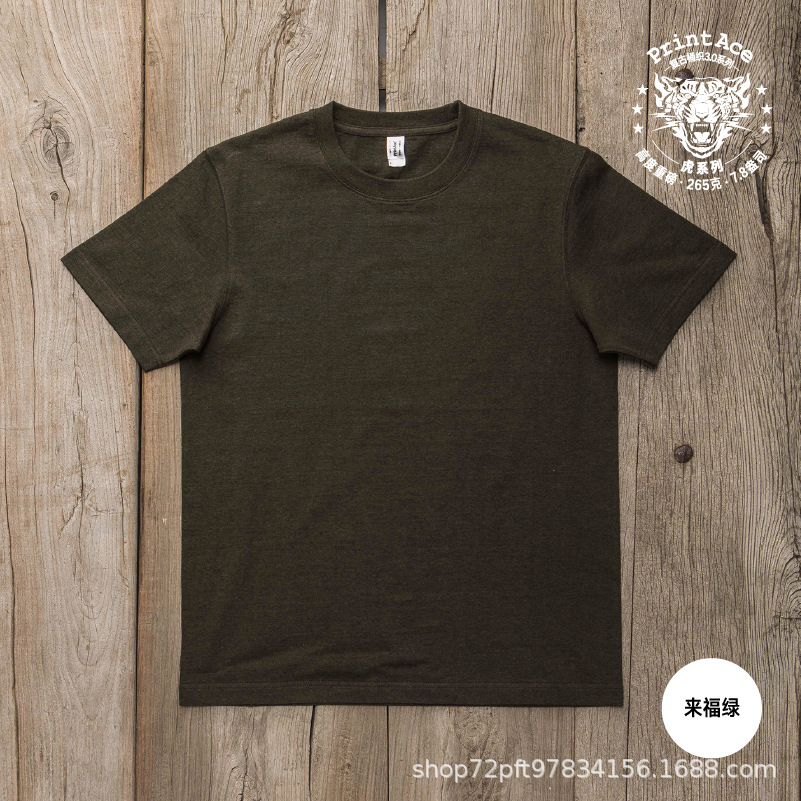 1-33 컬러 PrintAce 카지 레트로 슈퍼 헤비 코튼 원활한 배럴 짠 라운드 넥 반소매 남성용 T 6100