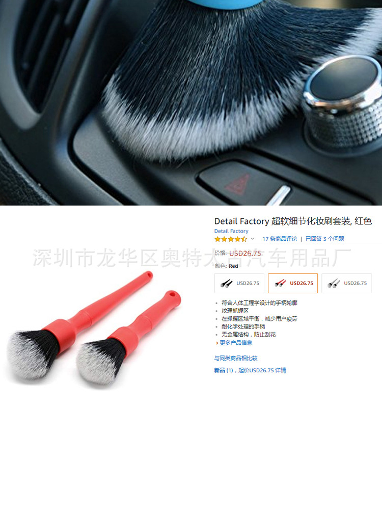 미국 디테일 팩토리 인테리어 디테일 브러쉬, 틈새 브러쉬 DF형 초극세사 클리닝 브러쉬, 블랙 차량용