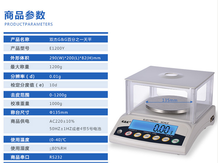 E300YA-600YA电子天平E1200YA双杰电子天平秤0.001g实验室电子称