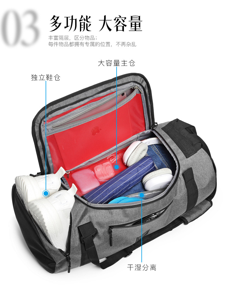 공장 직판 신제품 접이식 스포츠 여행 가방, 건식 및 습식 분리형, 독립 신발 수납공간이 있는 휴대용 피트니스 가방