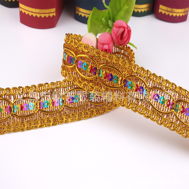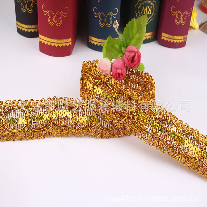 공장 도매 금 및 실버 레이스 골드 스레드 커튼 컬러 레이스 의류 액세서리 스팽글 골드 레이스스토어 가기