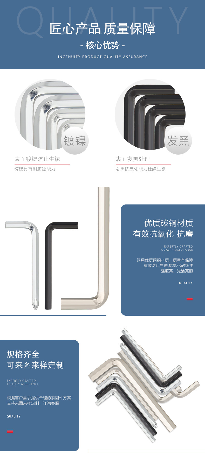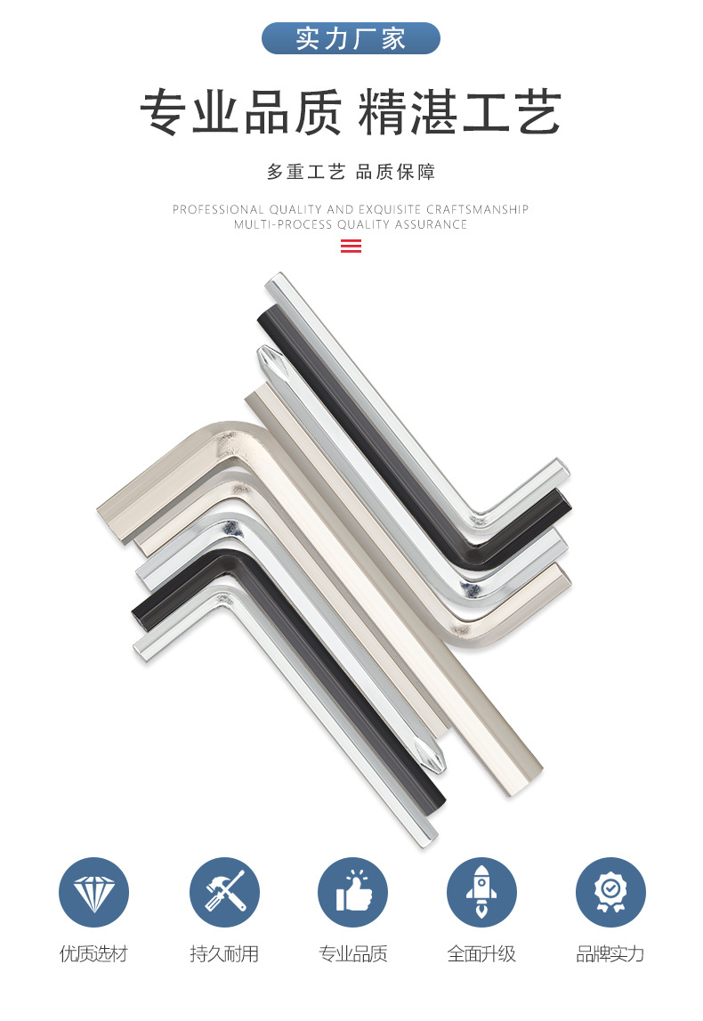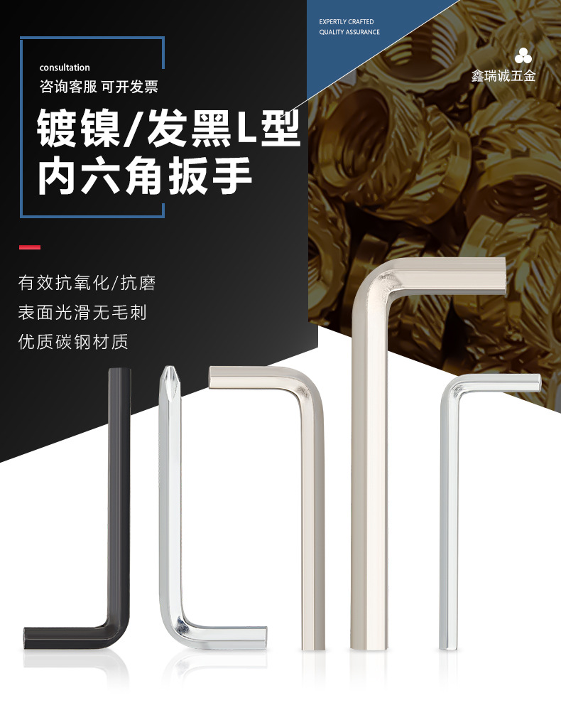 니켈 도금 블랙 L형 육각 렌치 탄소강 공정 아연 도금 육각 키 L형 십자 렌치 M1.27-M5 나사