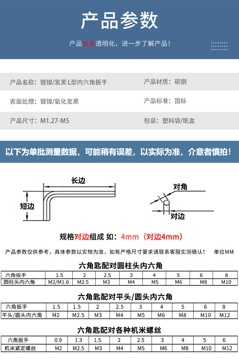 니켈 도금 블랙 L형 육각 렌치 탄소강 공정 아연 도금 육각 키 L형 십자 렌치 M1.27-M5 나사스토어 가기