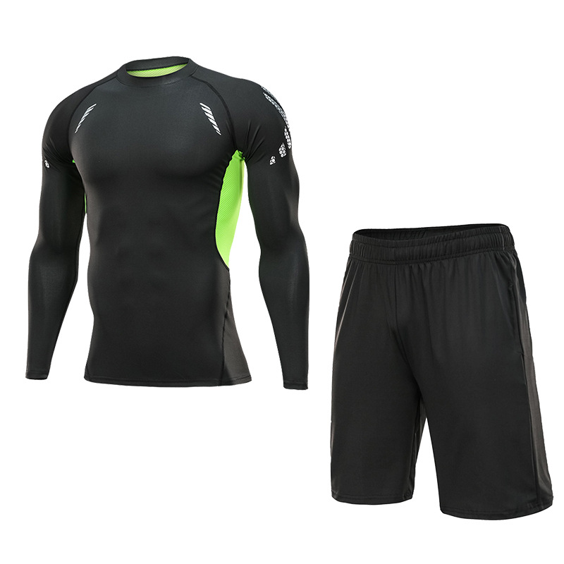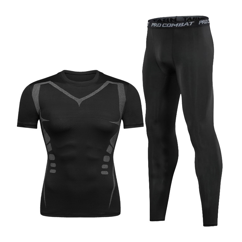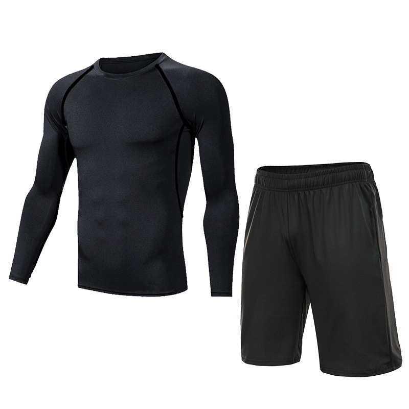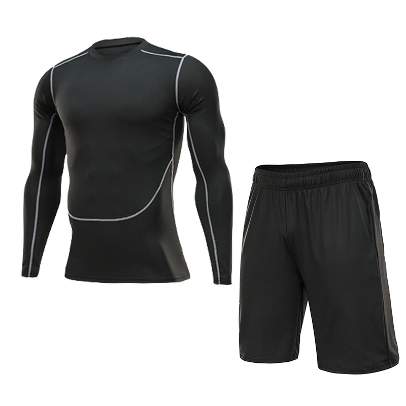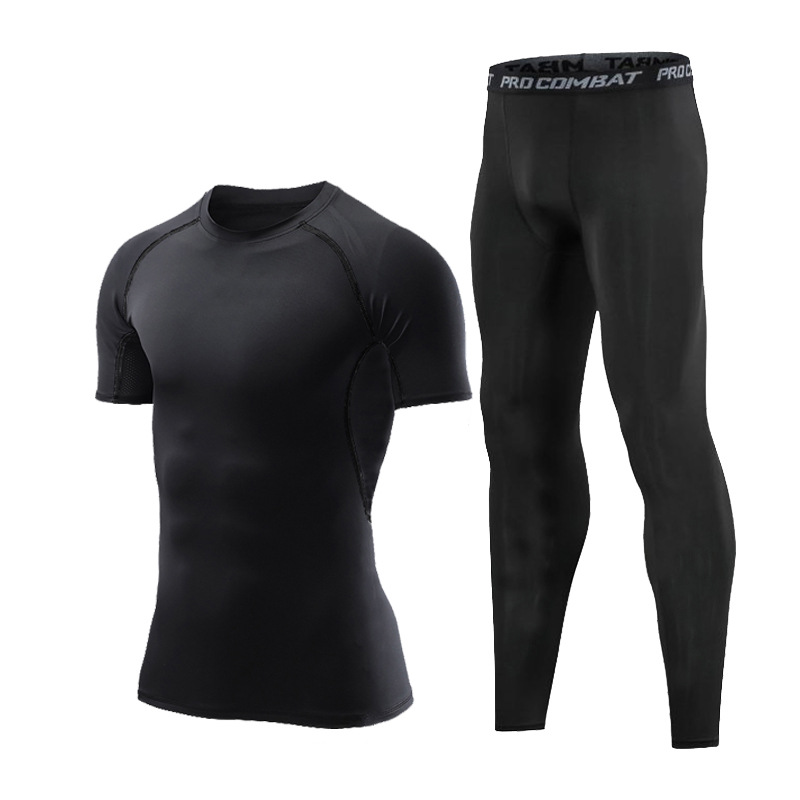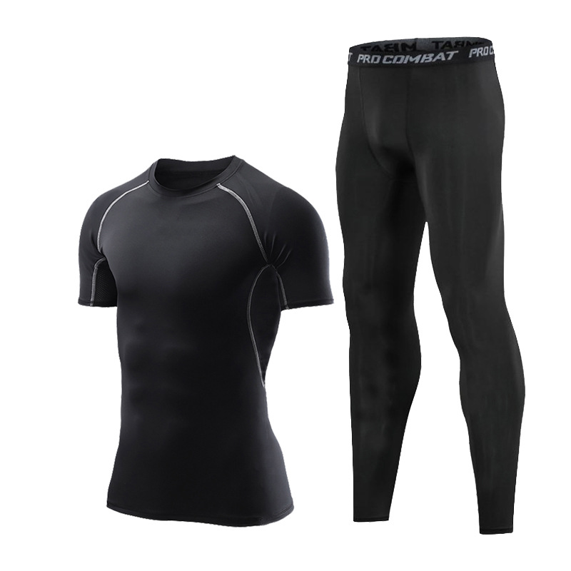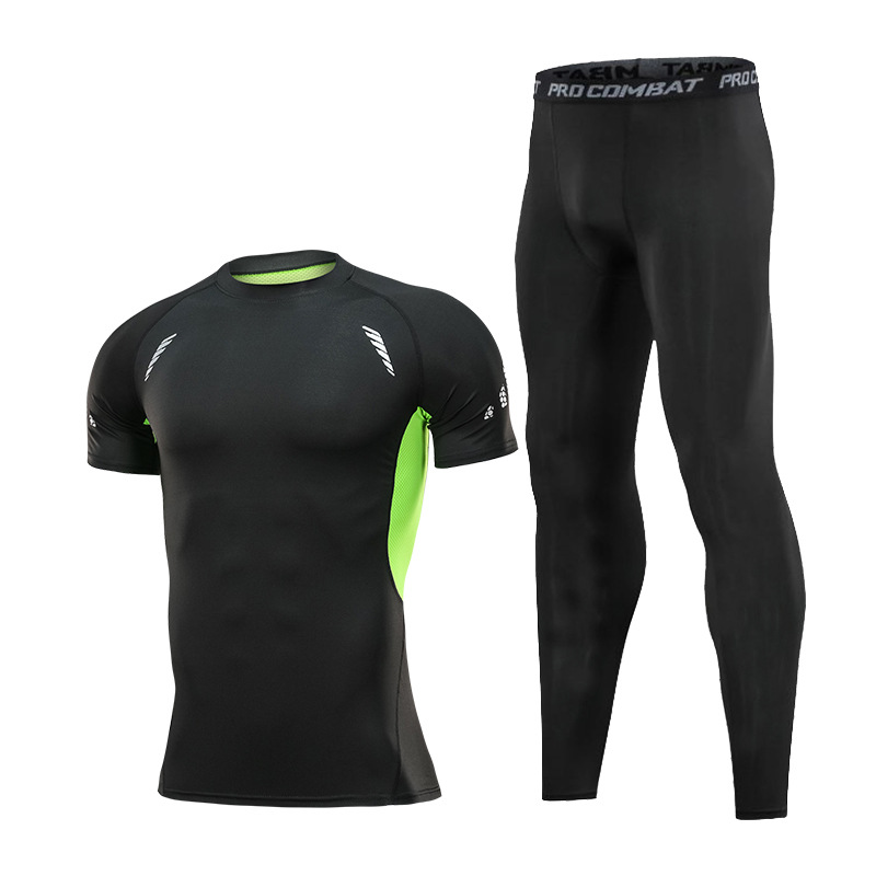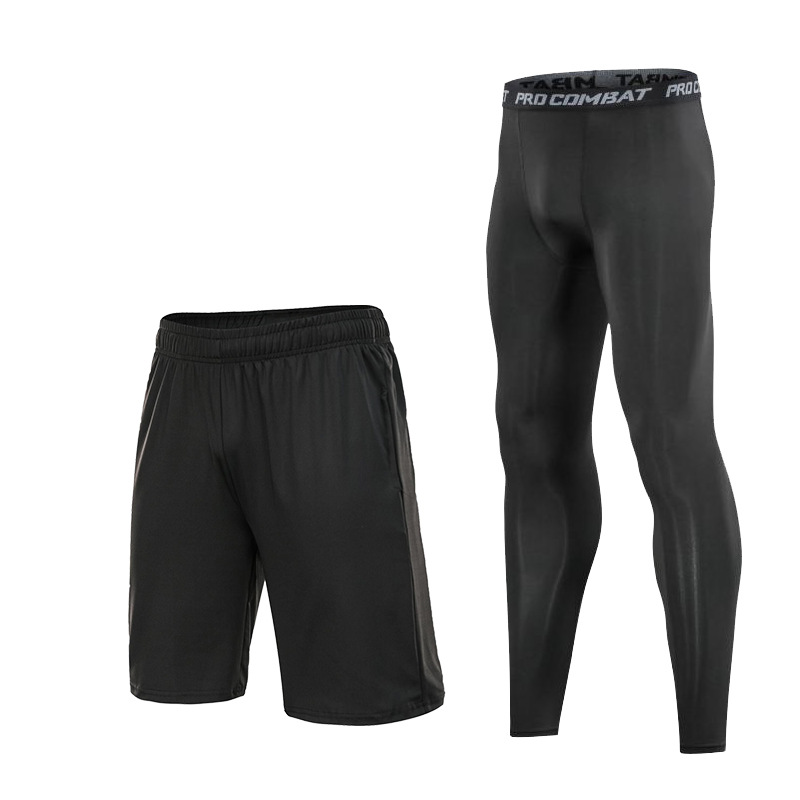 레깅스 남자의 피트니스 의류 실행 스포츠 세트 압축 바지 농구 레깅스 고탄성 속건 훈련 2 종 세트