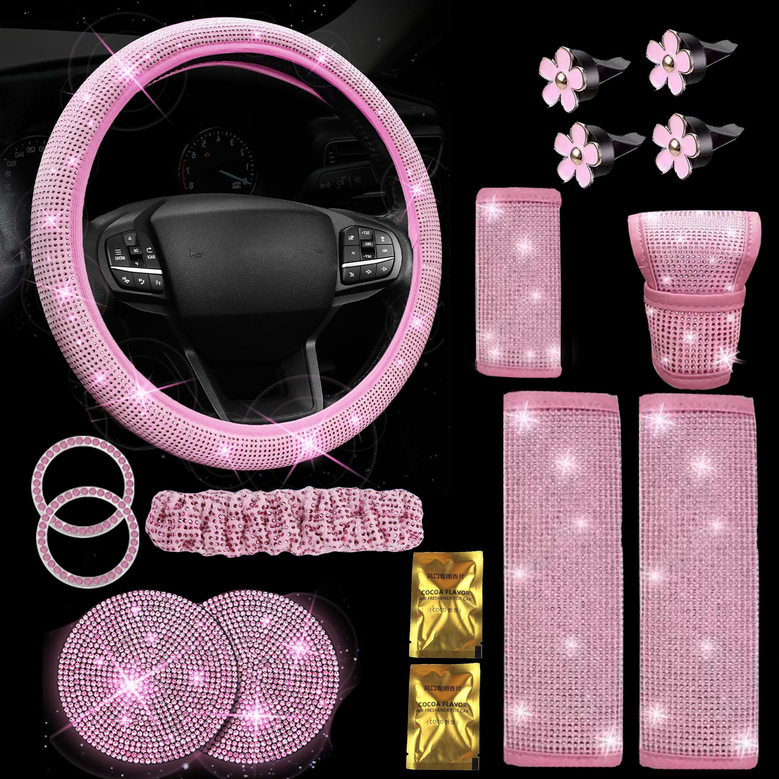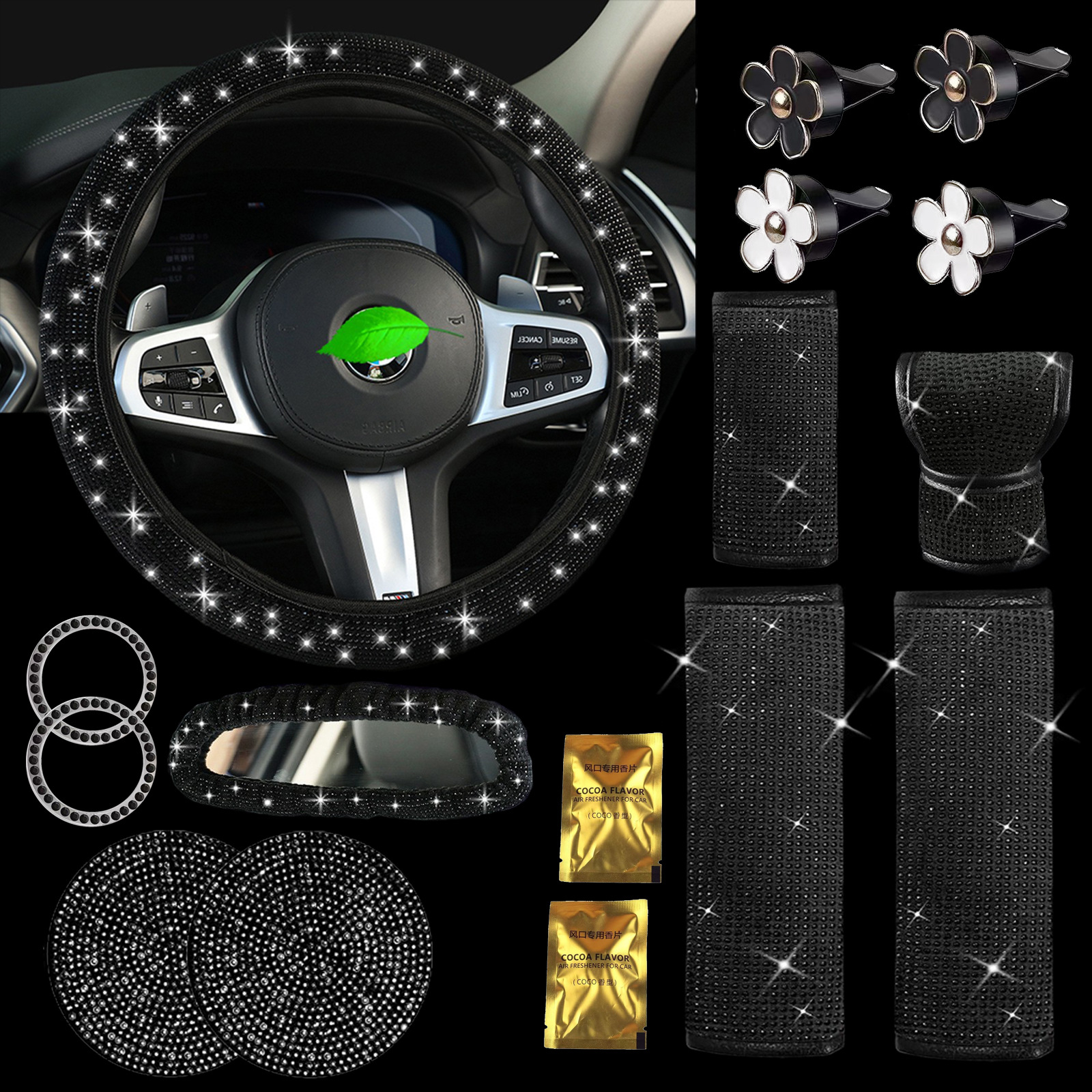 크로스보더 자동차 풀 다이아몬드 안전벨트 어깨 보호대, 핫픽스 다이아몬드 안전벨트 커버, 컬러 다이아몬드, 블랙 다이아몬드, 자동차용 다이아몬드 장식 인테리어 커버스토어 가기