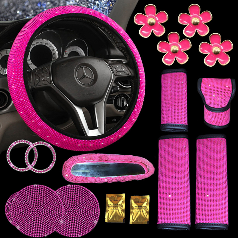 크로스보더 자동차 풀 다이아몬드 안전벨트 어깨 보호대, 핫픽스 다이아몬드 안전벨트 커버, 컬러 다이아몬드, 블랙 다이아몬드, 자동차용 다이아몬드 장식 인테리어 커버