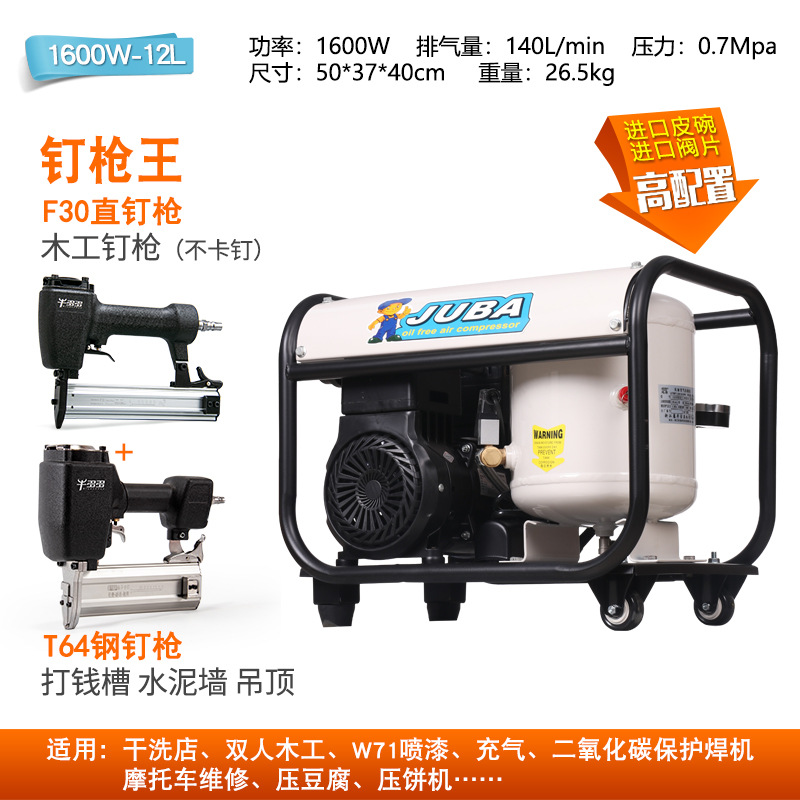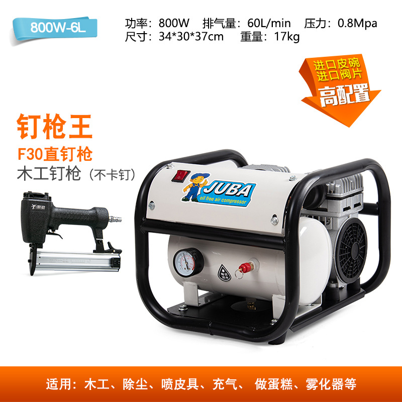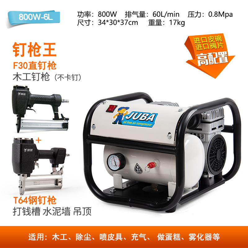 Hurricane Silent 오일리스 공기 압축기 800W6L 네일 건 킹 구리 목공 스프레이 페인트 공기 펌프 네일 건 공기 압축기