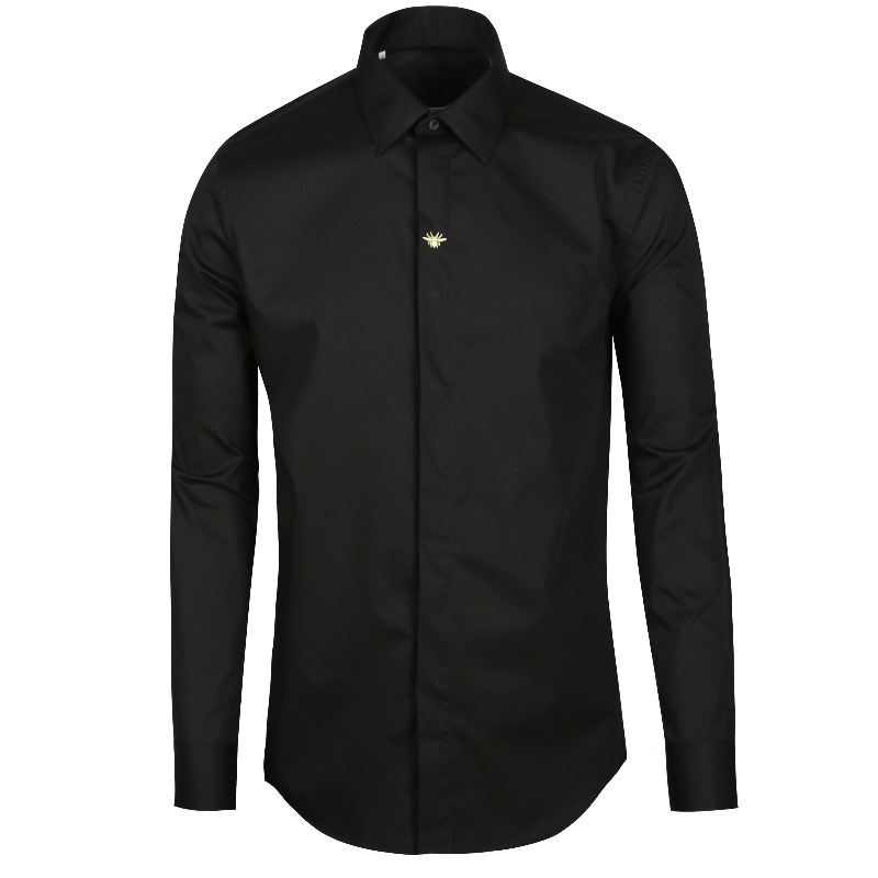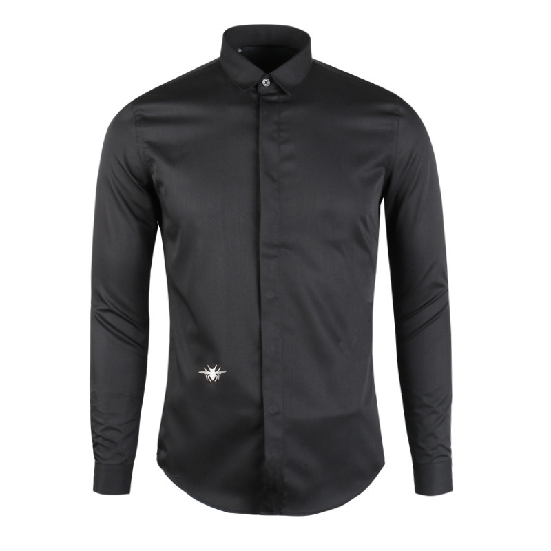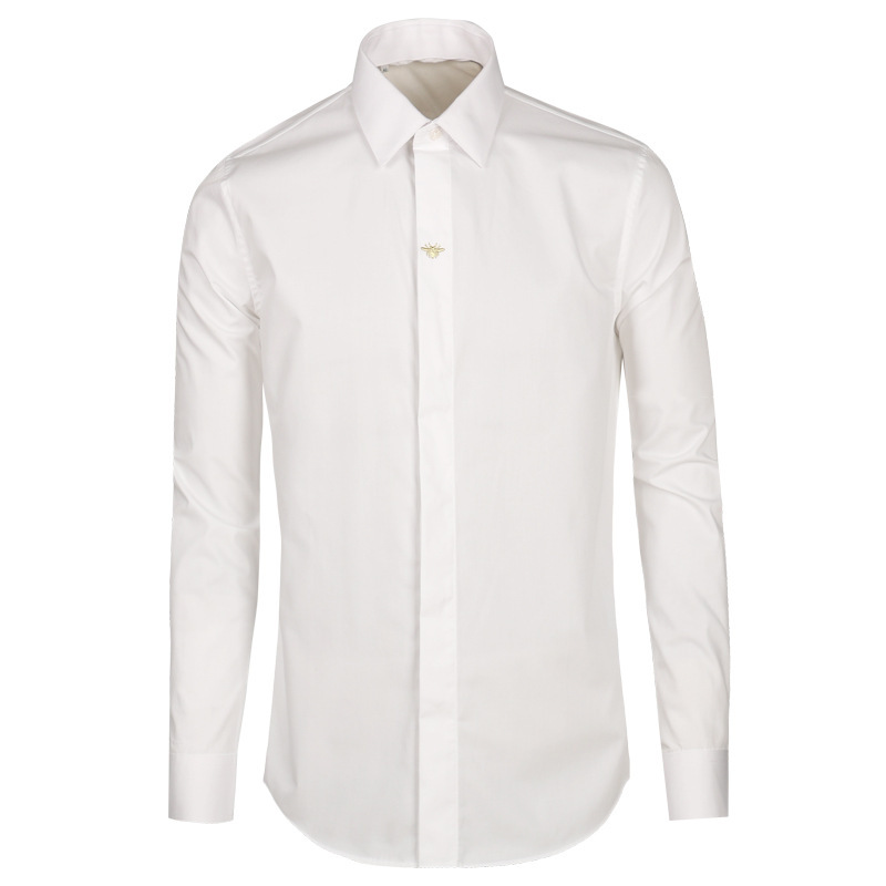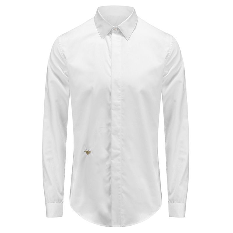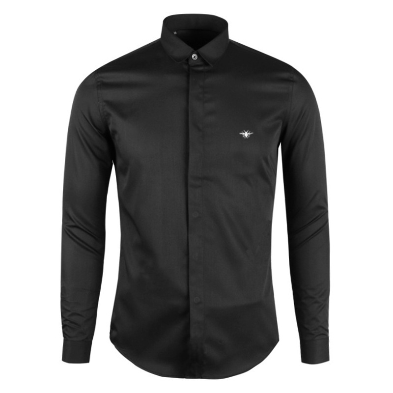 남성용 긴 소매 셔츠 클래식 꿀벌 자수 패션 슬림 핏 올매치 흑백 플러스 사이즈 남성용 셔츠 긴 소매스토어 가기
