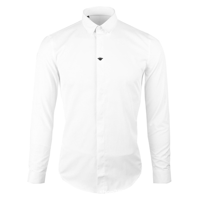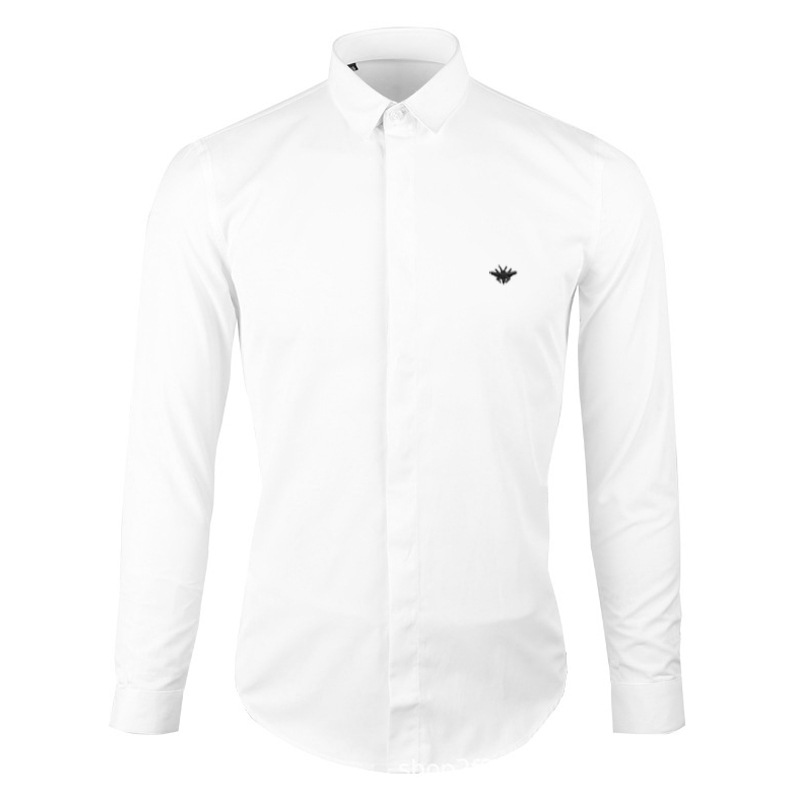 남성용 긴 소매 셔츠 클래식 꿀벌 자수 패션 슬림 핏 올매치 흑백 플러스 사이즈 남성용 셔츠 긴 소매