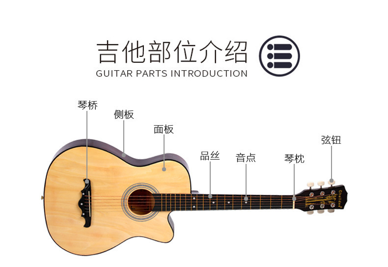 기타 도매 초보자 기타 38 인치 어쿠스틱 기타 민속 연습 남성과 여성을위한 성인 학생 기타 악기 http스토어 가기