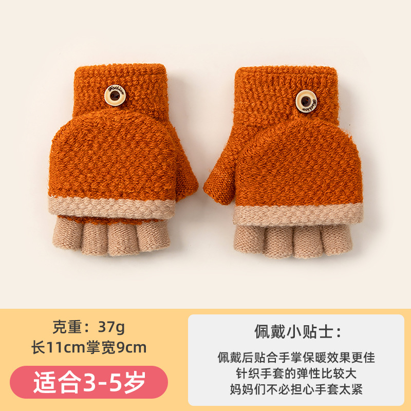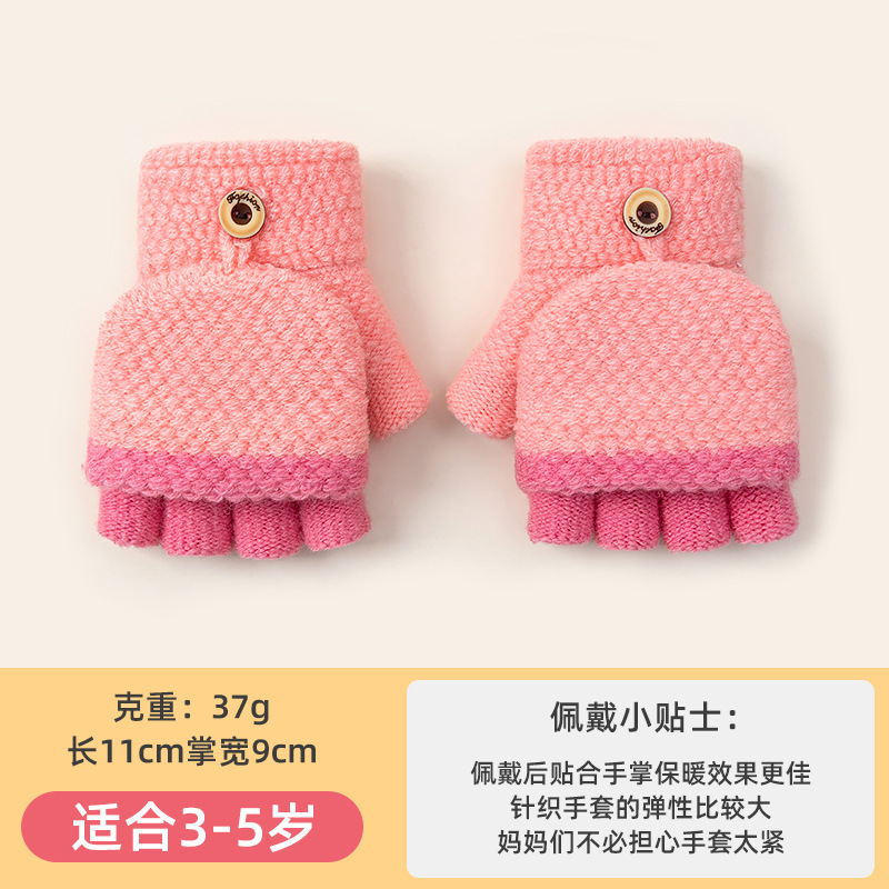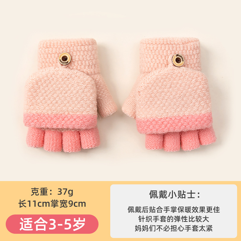 어린이 쓰기 반 손가락 장갑 소녀 가을과 겨울 플립 오픈 핑거 니트 따뜻한 기모 남자의 귀여운 만화 도매스토어 가기