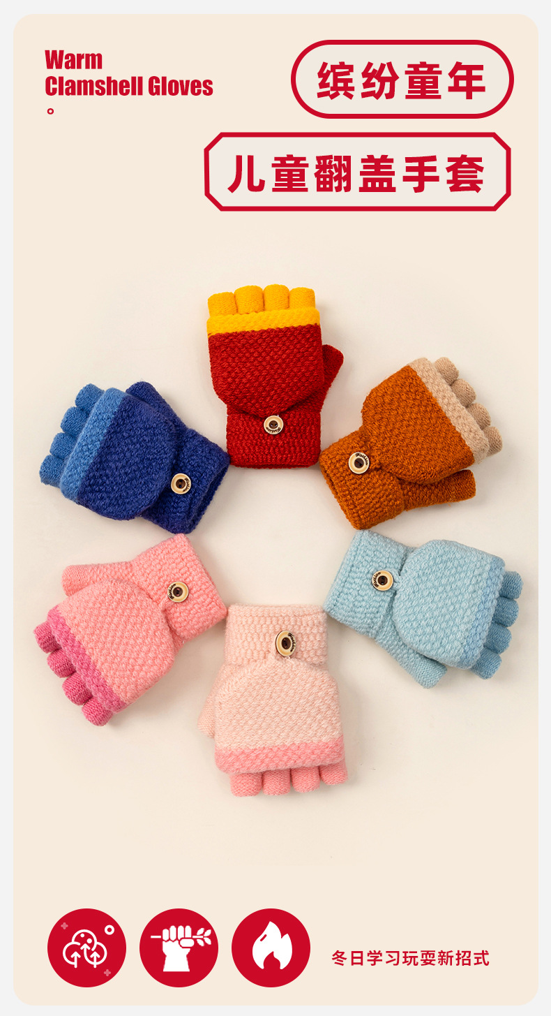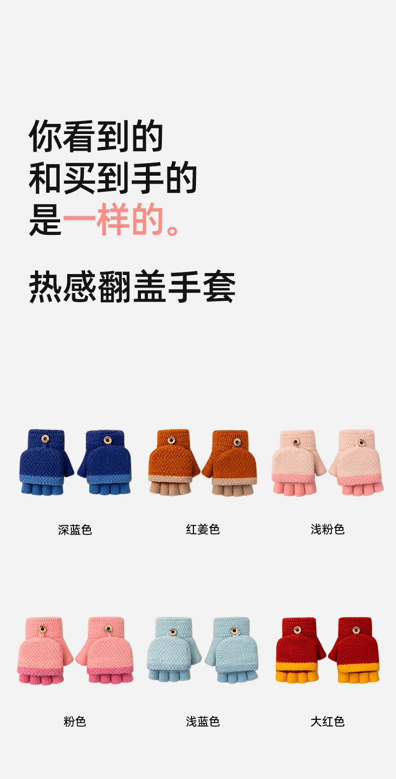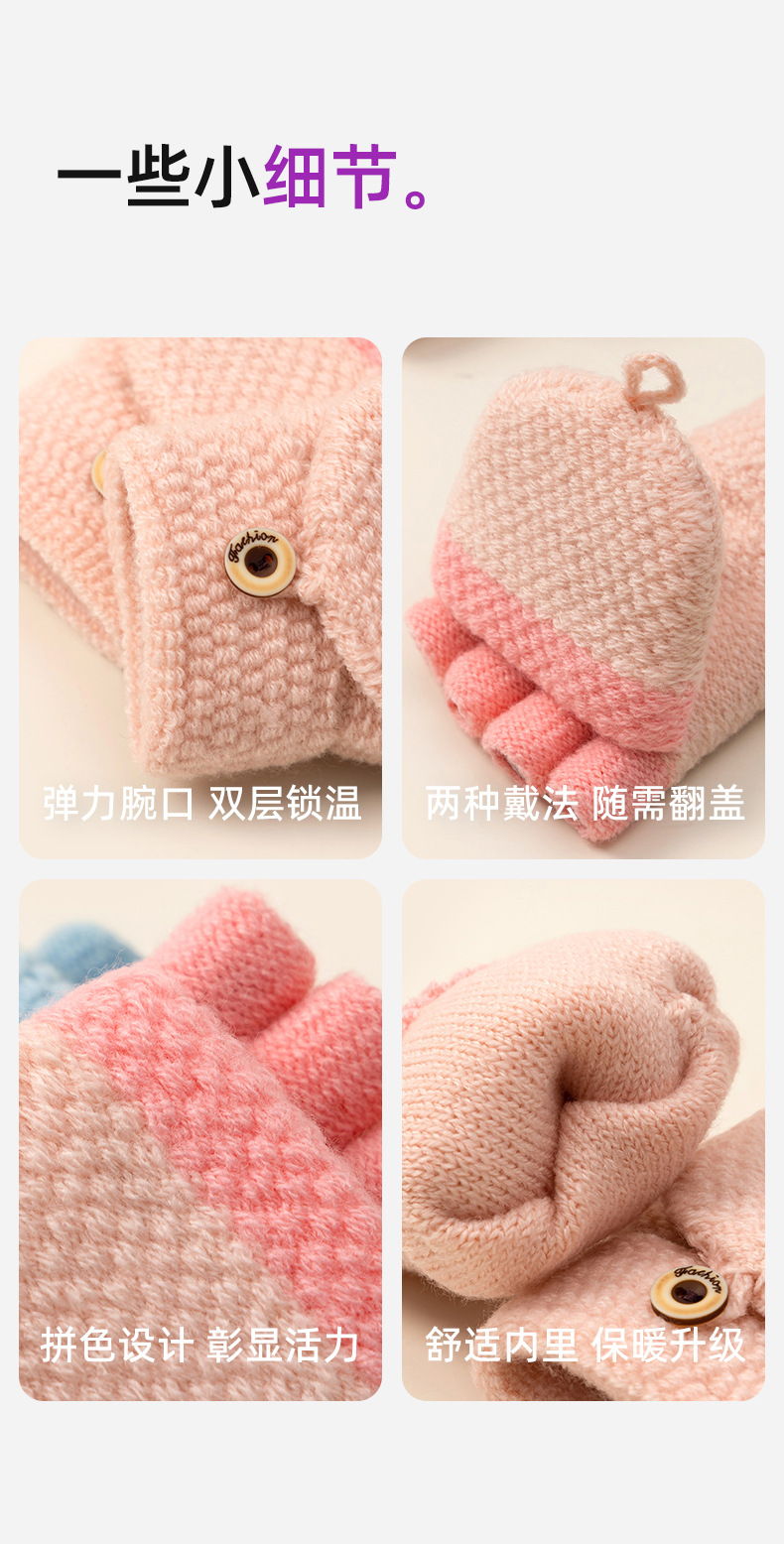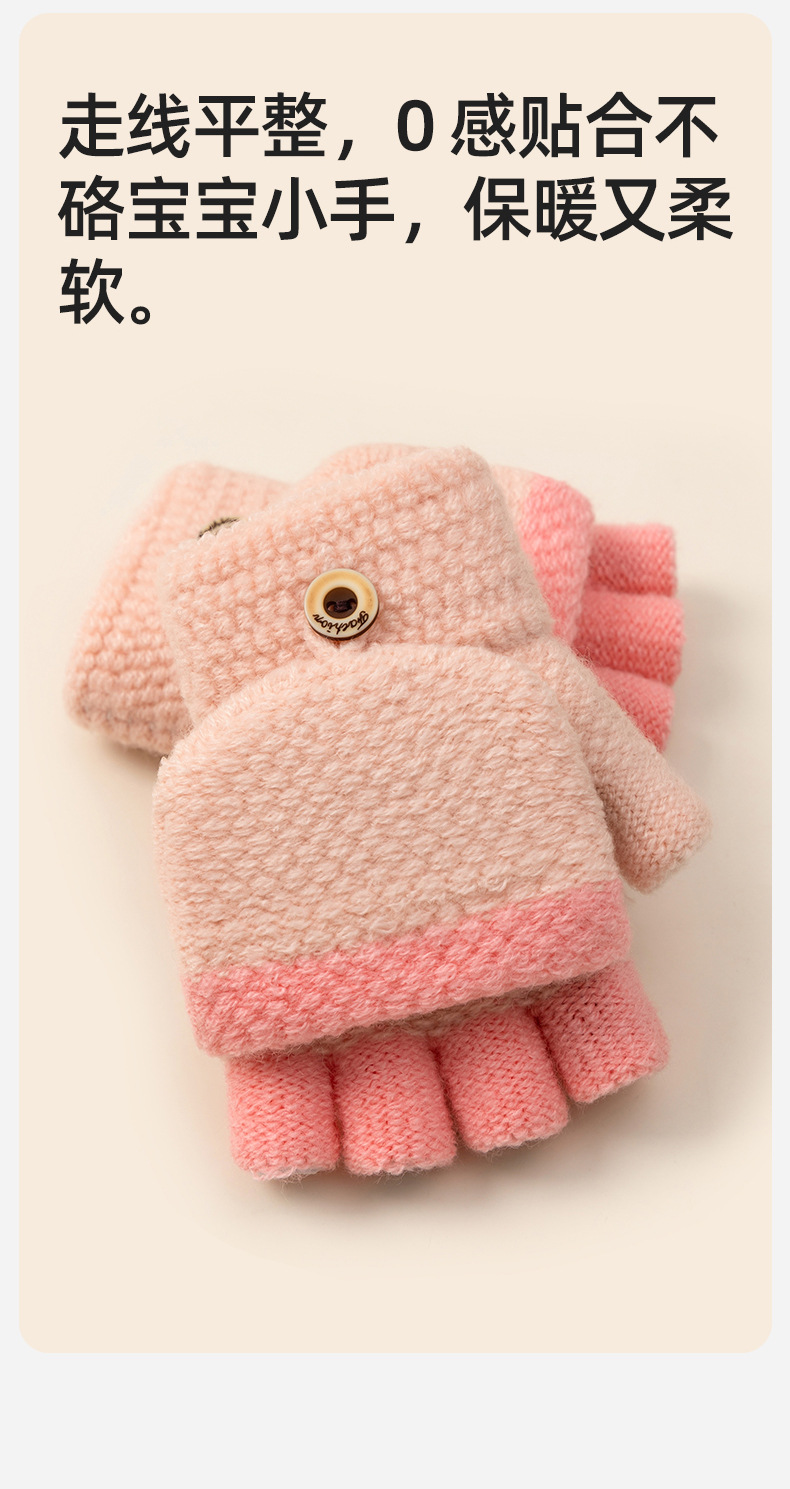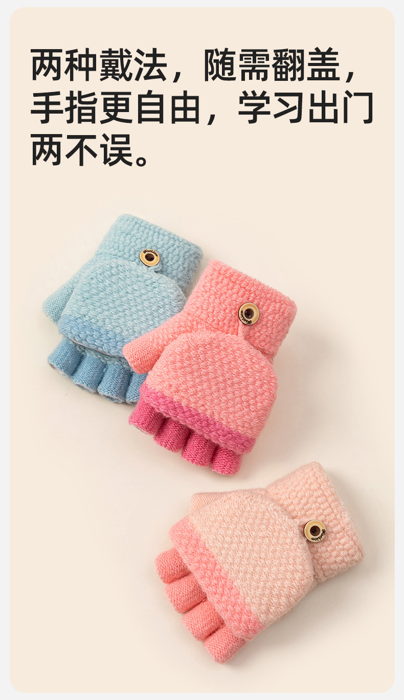 어린이 쓰기 반 손가락 장갑 소녀 가을과 겨울 플립 오픈 핑거 니트 따뜻한 기모 남자의 귀여운 만화 도매