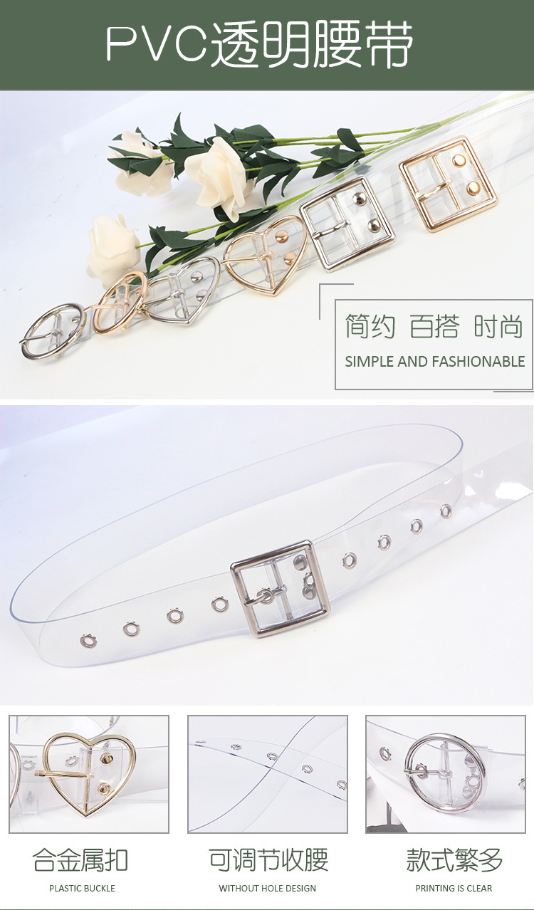 透明腰带 pvc塑料皮带装饰简约学生裤带圆扣方扣百搭皮带