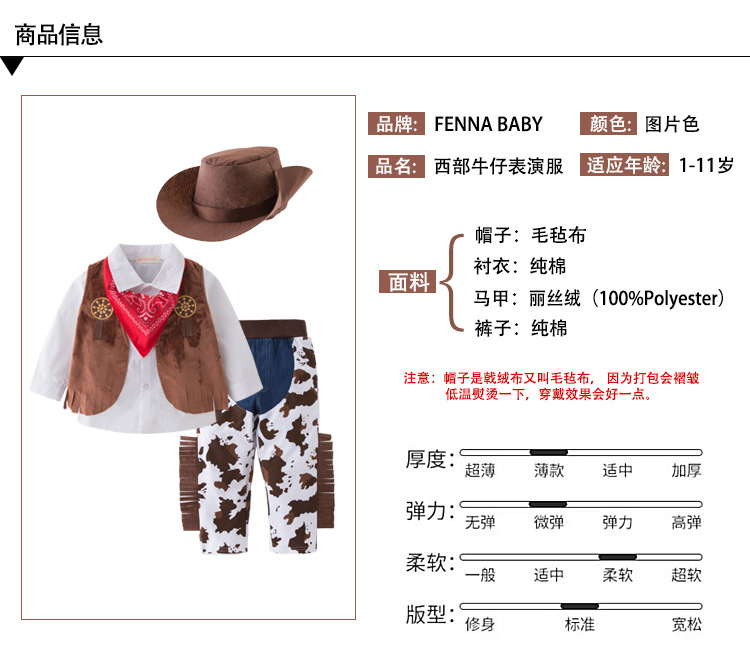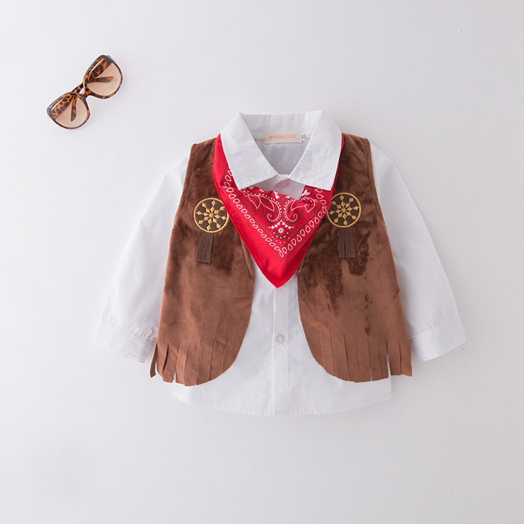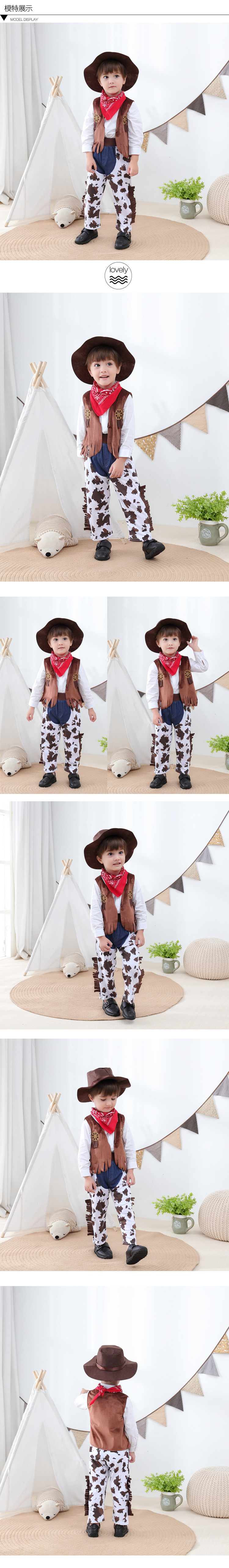 웨스턴 카우보이 어린이 긴팔 양복 소년 축제 의류 캐릭터 의류 퍼포먼스 의류 아기 어린이 양복 5 피스 세트스토어 가기