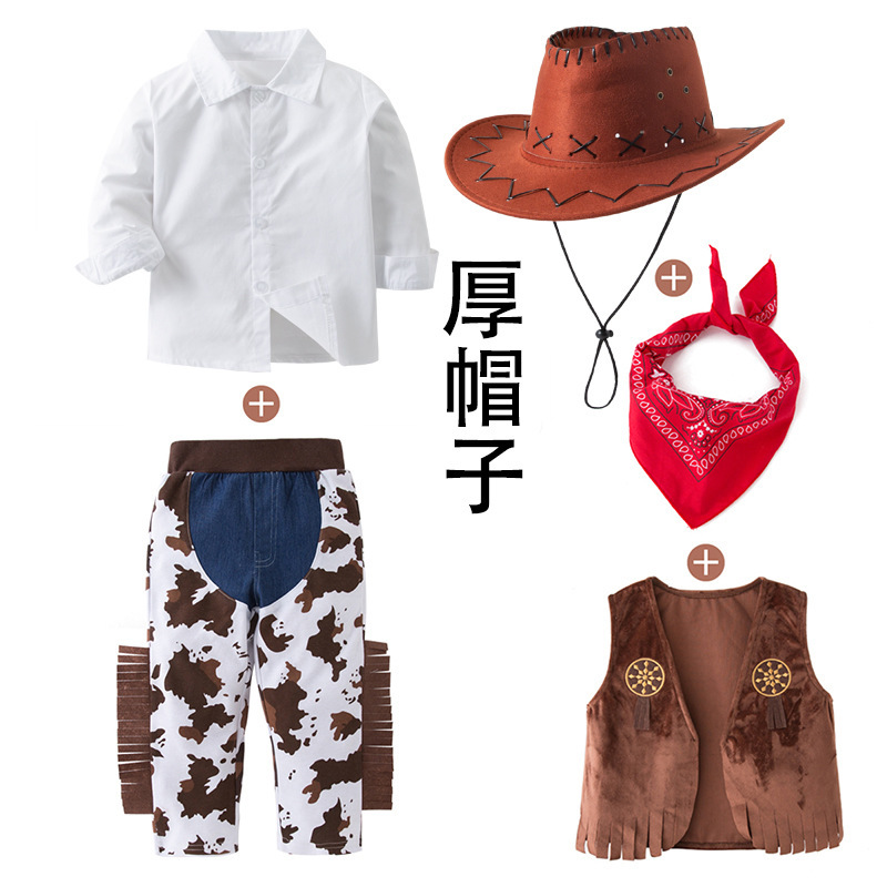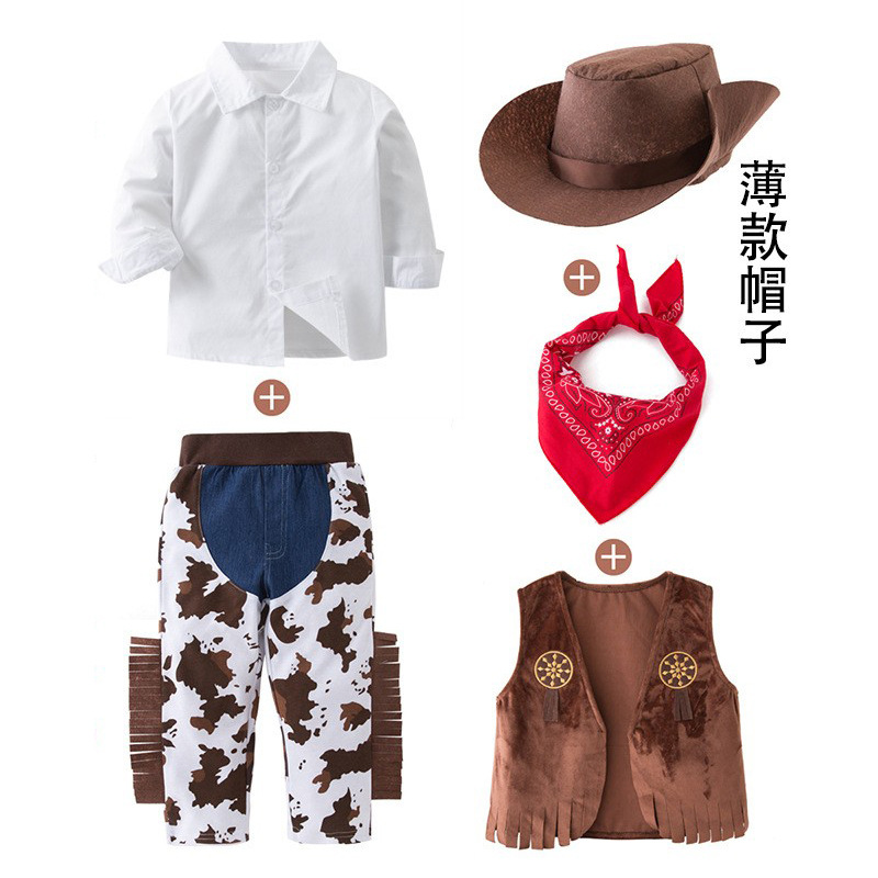 웨스턴 카우보이 어린이 긴팔 양복 소년 축제 의류 캐릭터 의류 퍼포먼스 의류 아기 어린이 양복 5 피스 세트