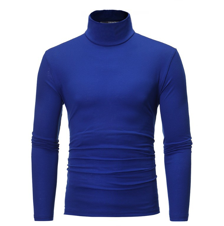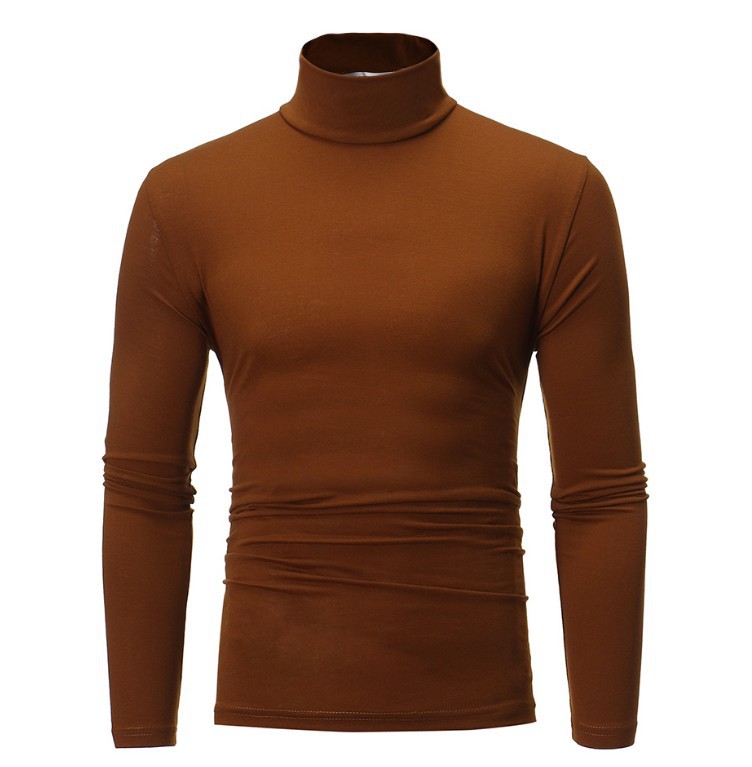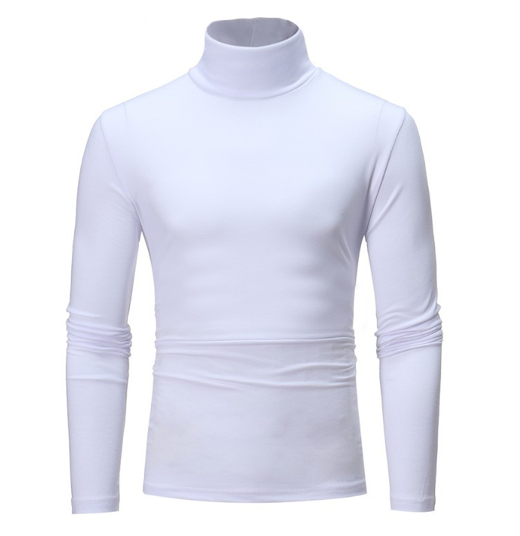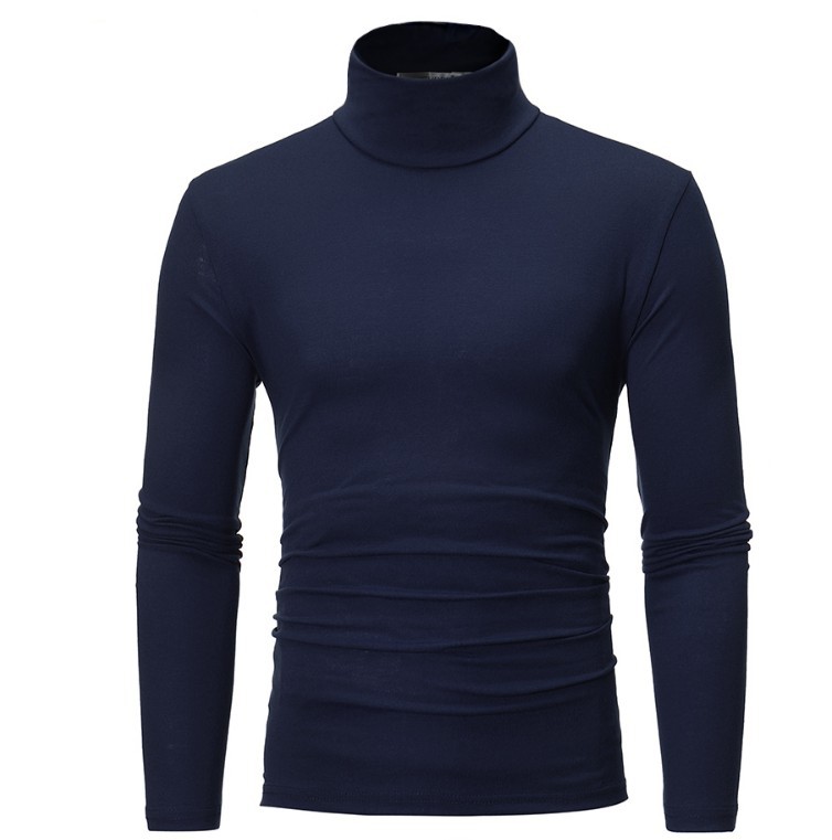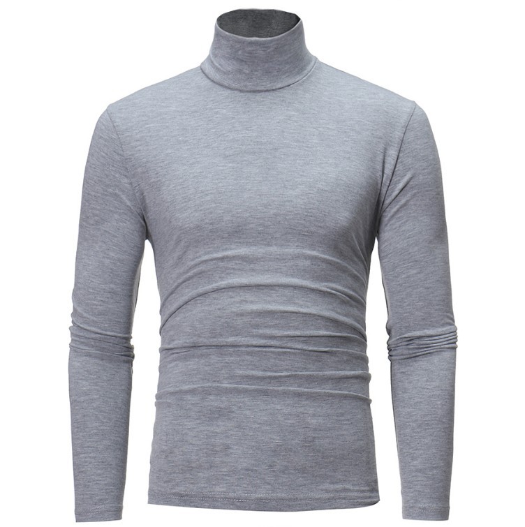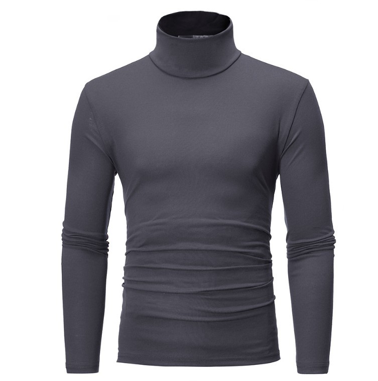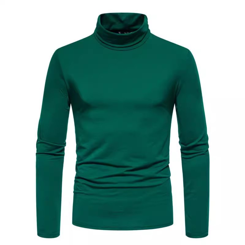 크로스보더 무역 봄 가을 남성용 하이넥 긴팔 티셔츠 단색 슬림핏 남성 의류 티셔츠 도매 긴팔스토어 가기